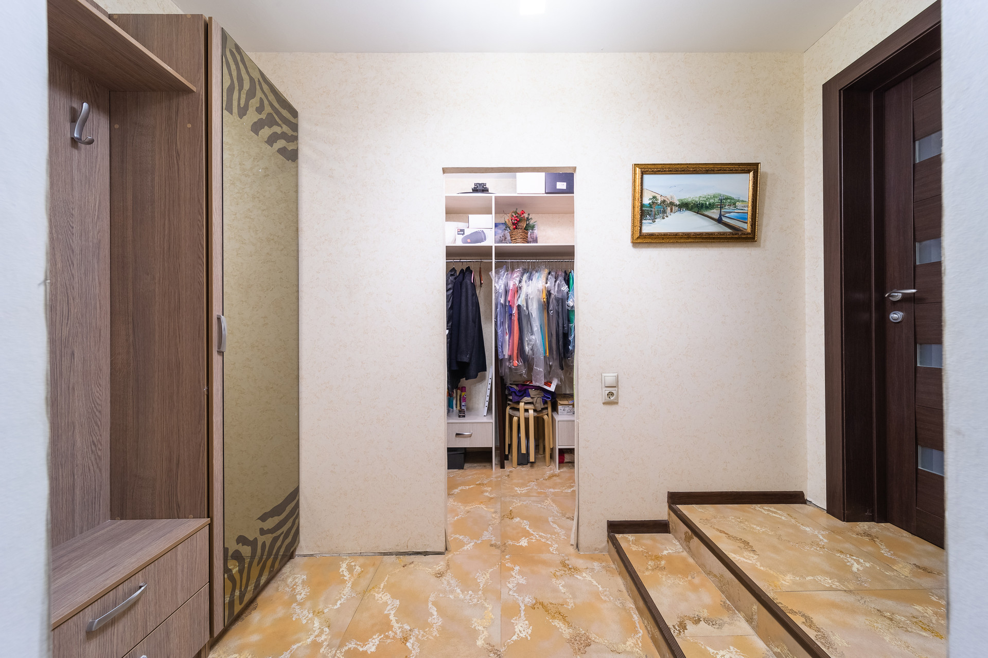 Удачная планировка, позволяющая все вещи складировать в просторной гардеробной,