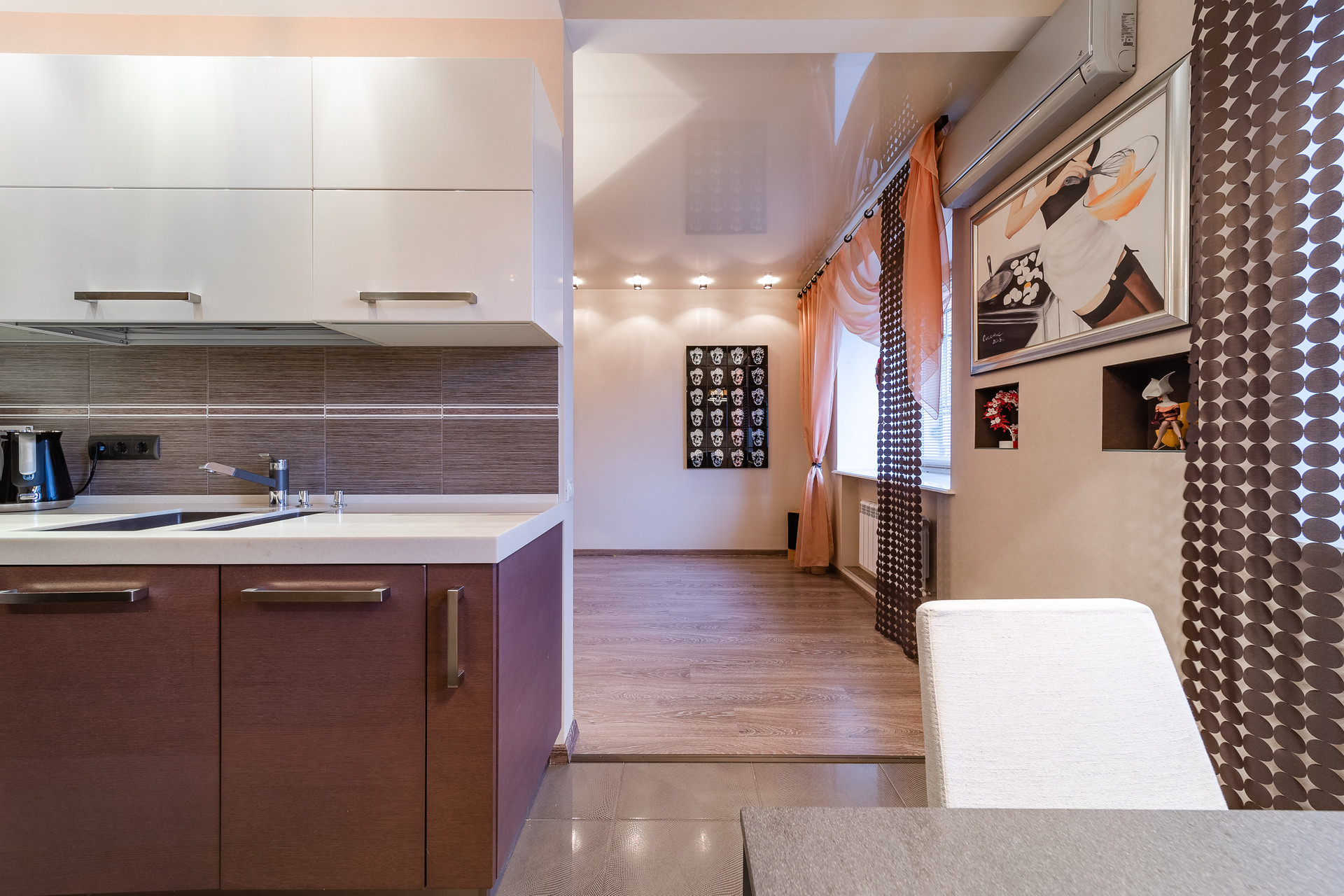 Качественный ремонт выполнен в спокойных тонах.