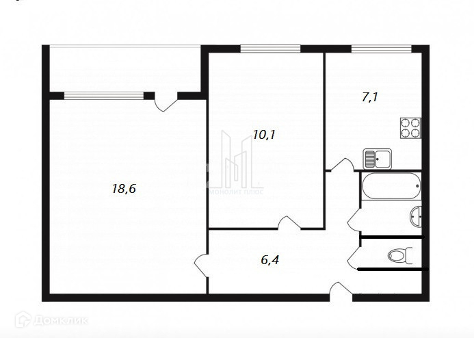 Общая площадь - 47,9 м2, жилая - 28,7 м2, кухня - 7,1 м2, прихожая - 6,4 м2, есть ниша под гардеробную или шкаф, санузел - раздельный, 9/9 этаж, над квартирой - технический этаж.