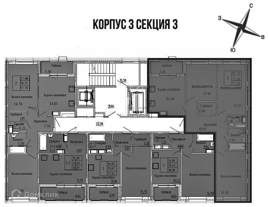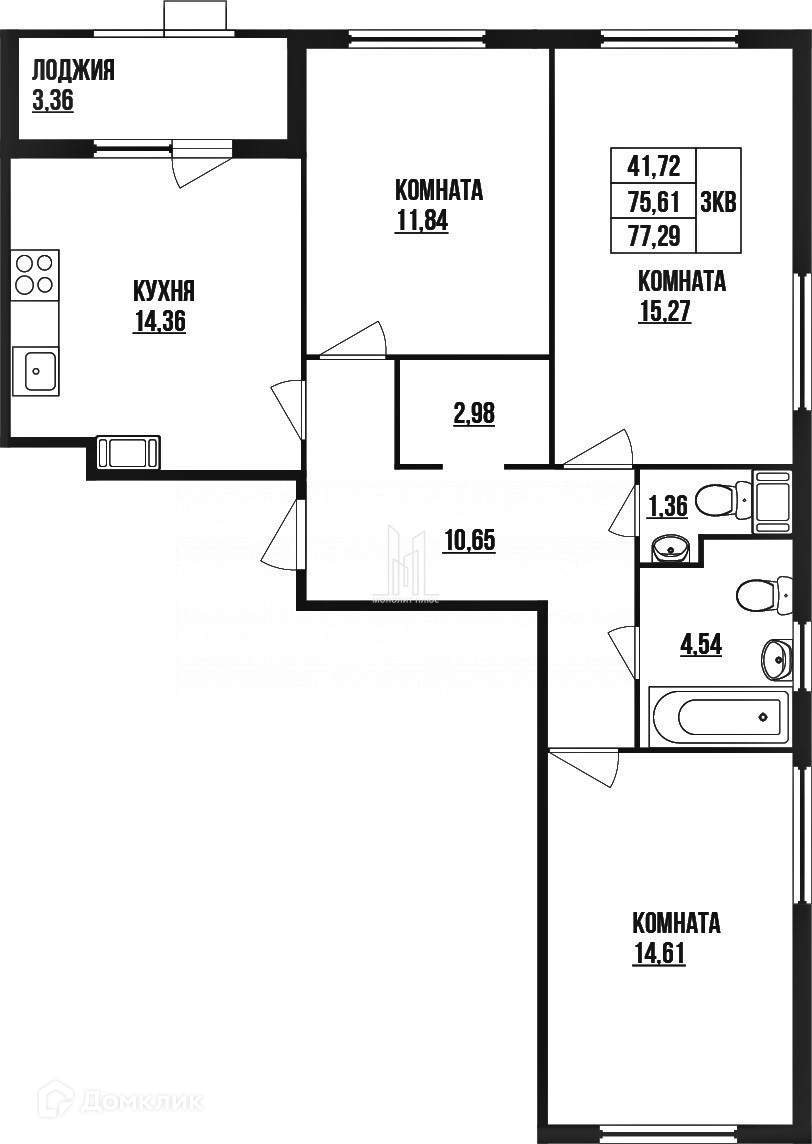 Общая площадь 77.29 м2