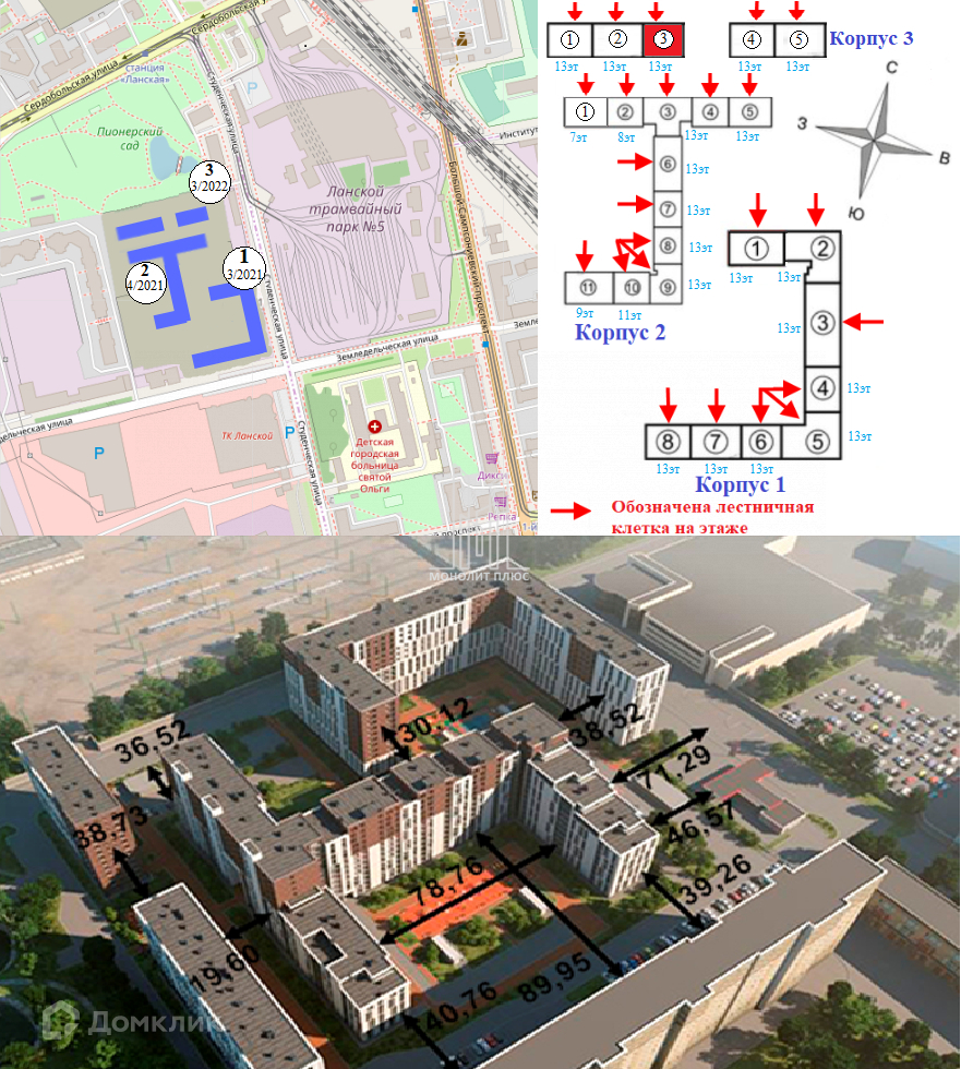 3-комнатная квартира, 77.29 м2, этаж 2 / 13, на продажу в Санкт-Петербурге, Студенческая улица, 14к2