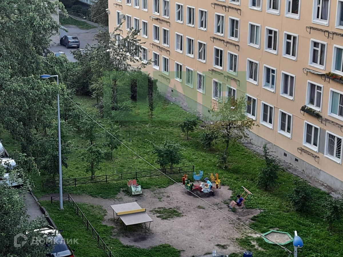 Окна выходят в просторный зеленый двор.