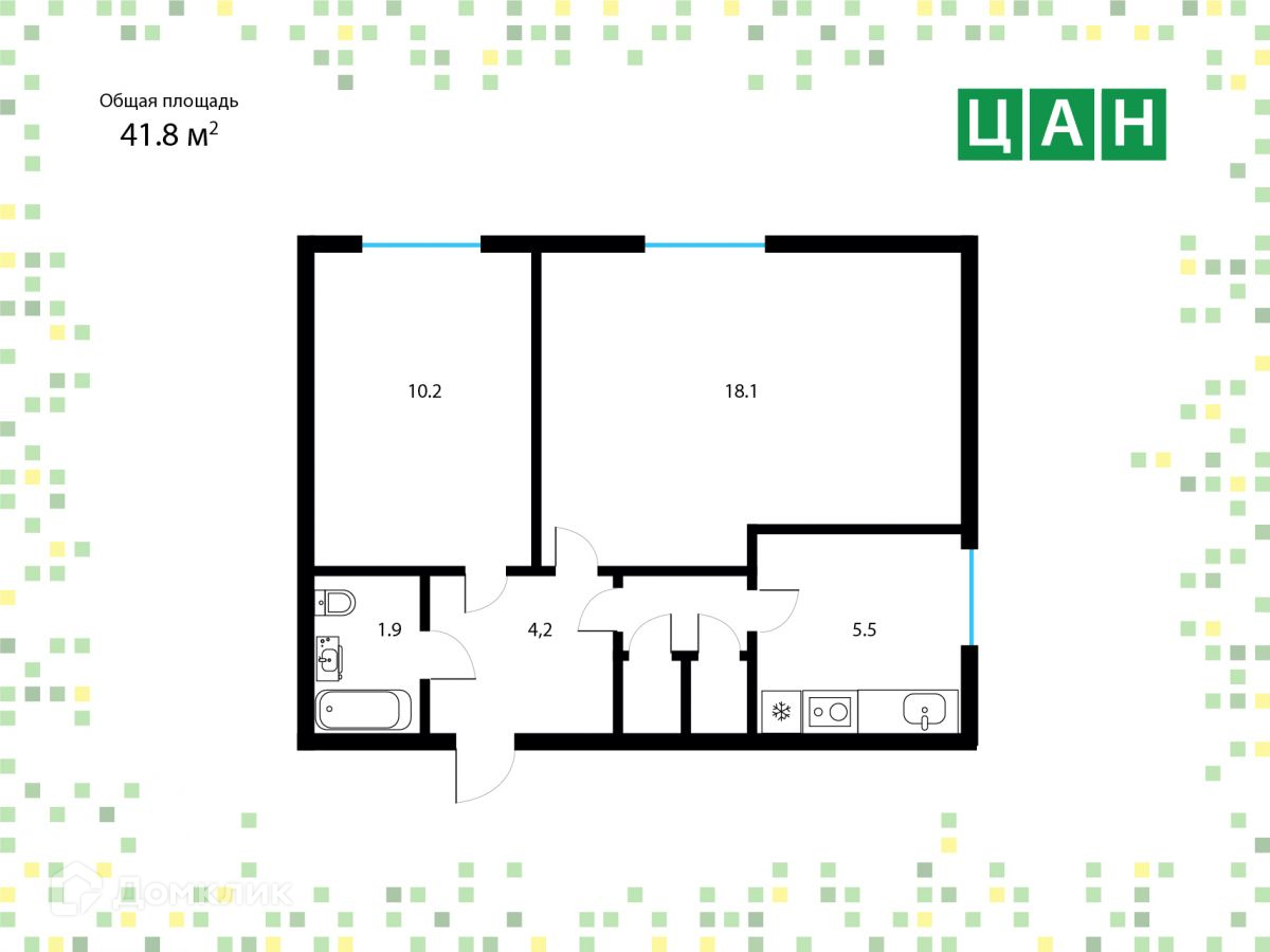 - Общая площадь - 41,8 кв.м.
