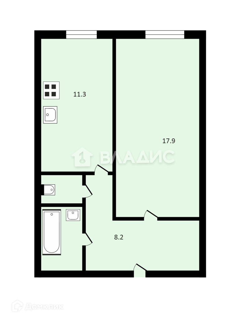 Жилая площадь 17.9 м2