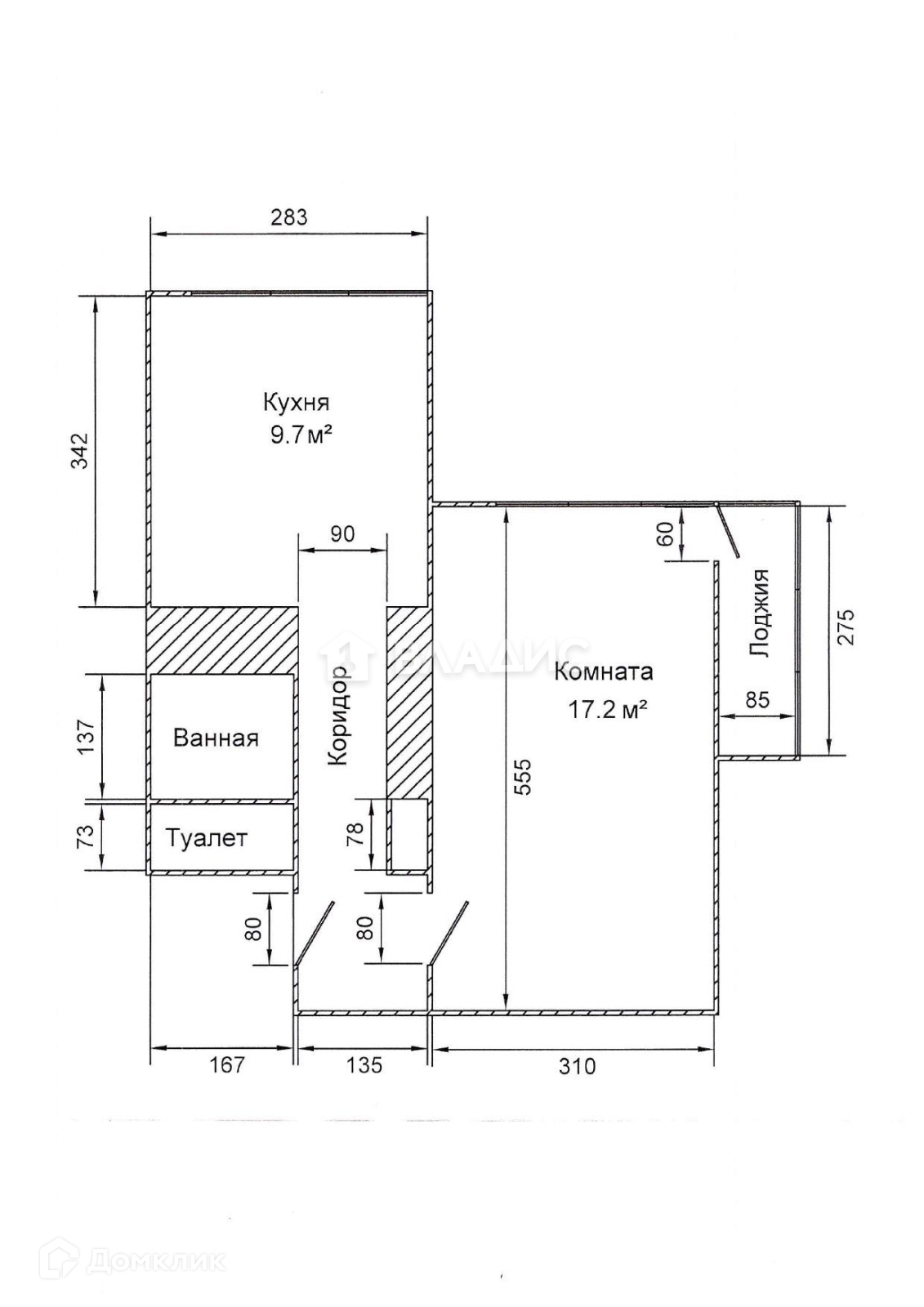 Жилая площадь 17.2 м2