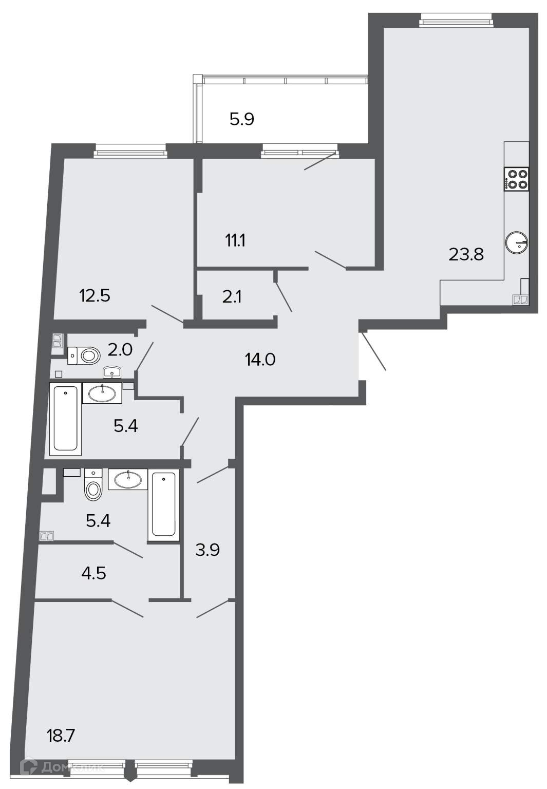 Площадь кухни 23.8 м2
