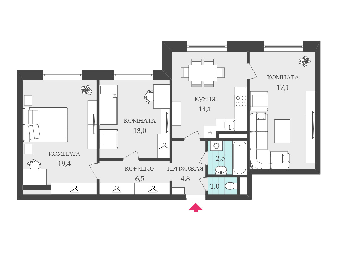 Квартира расположена на 11-ом этаже, КОМФОРТНАЯ планировка. Квартира включает в себя: ПРОСТОРНУЮ кухню 14.10 м2, кухня прямоугольной формы, что позволяет сделать кухню с обеденной зоной, спальная комната 19,4 м2 , детская либо гостевая комната 17,1м2 ,а также комната без ремонта 13,0м2, санузел раздельный, ванная комната с ванной в светлых тонах. Большая прихожая . Квартира очень светлая, в летнее время будут видны красивые закаты из спальни и гостевой/ детской комнаты.