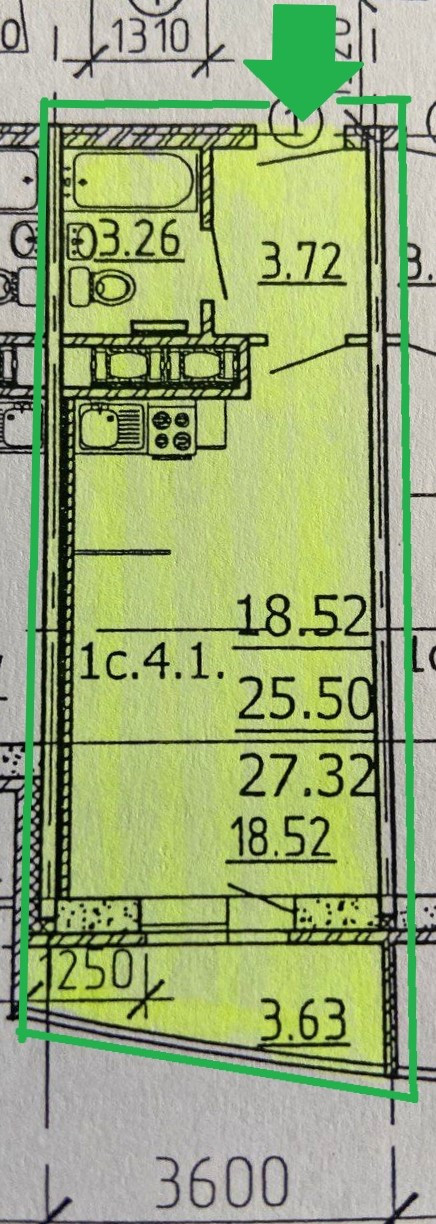 Балкон, лоджия 1 балкон