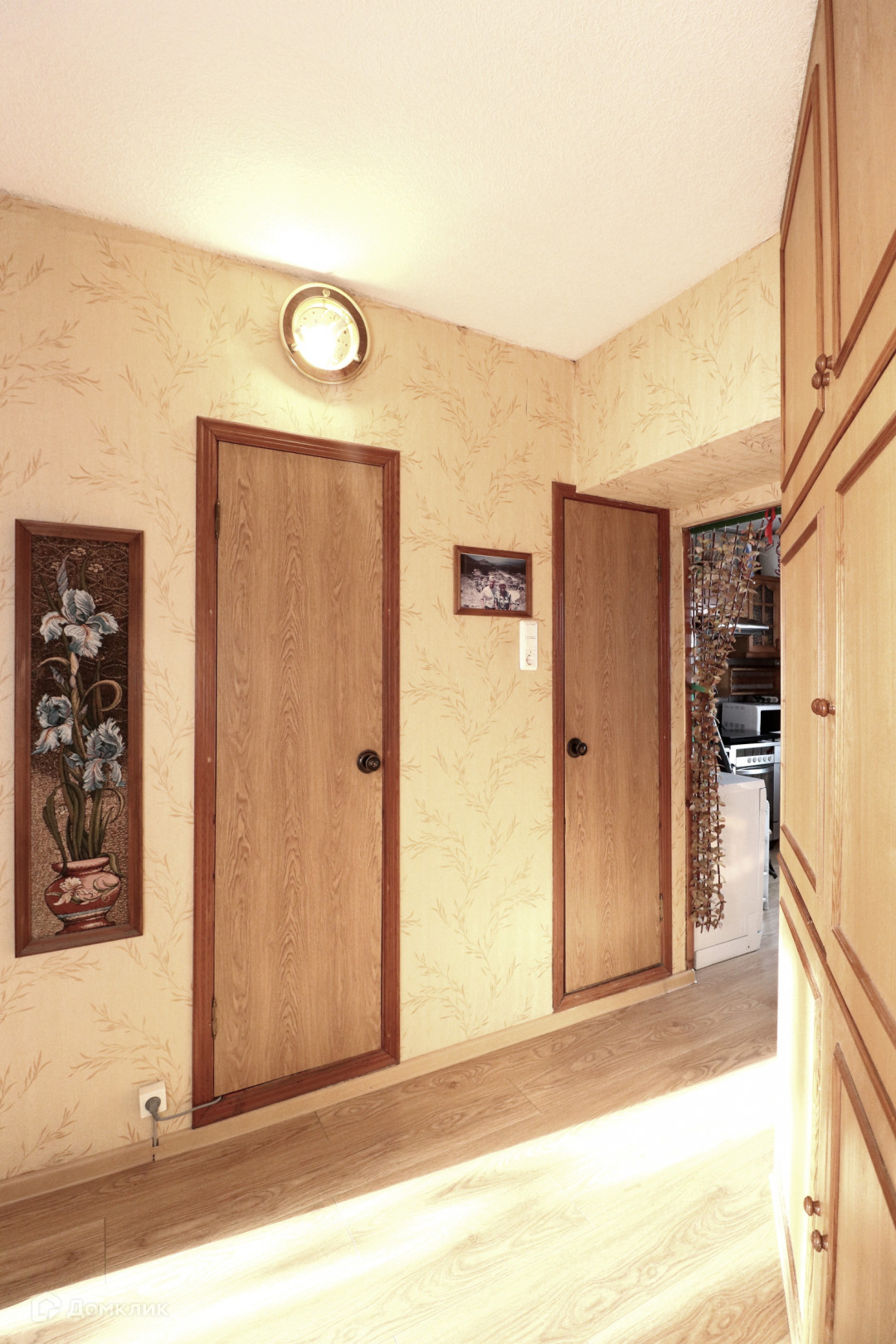 Заменены все коммуникации, батареи, на окнах установлены стеклопакеты, счетчики воды. Новому собственнику остается кухонная мебель, встроенная техника.