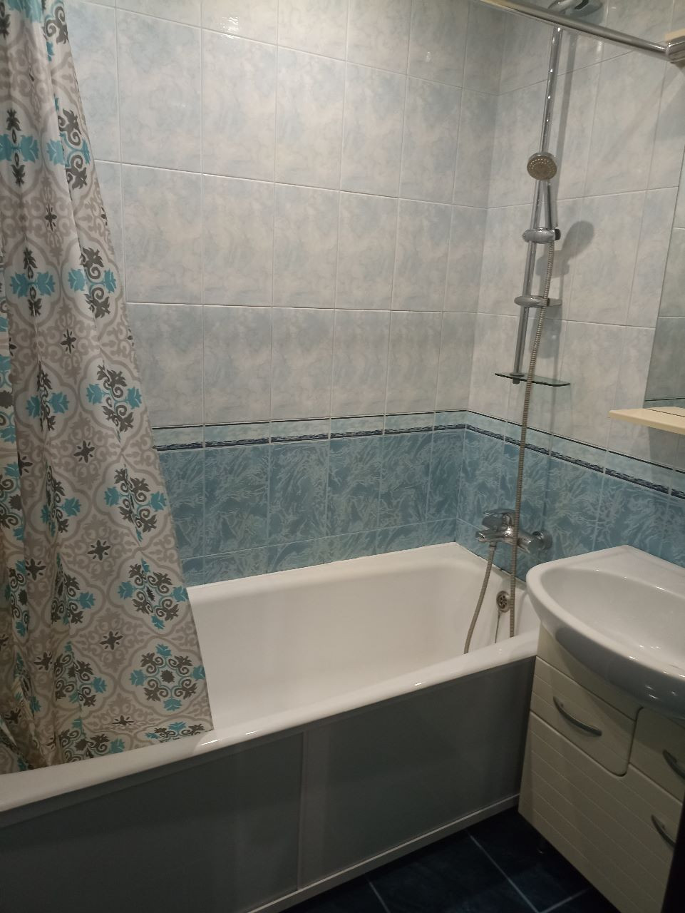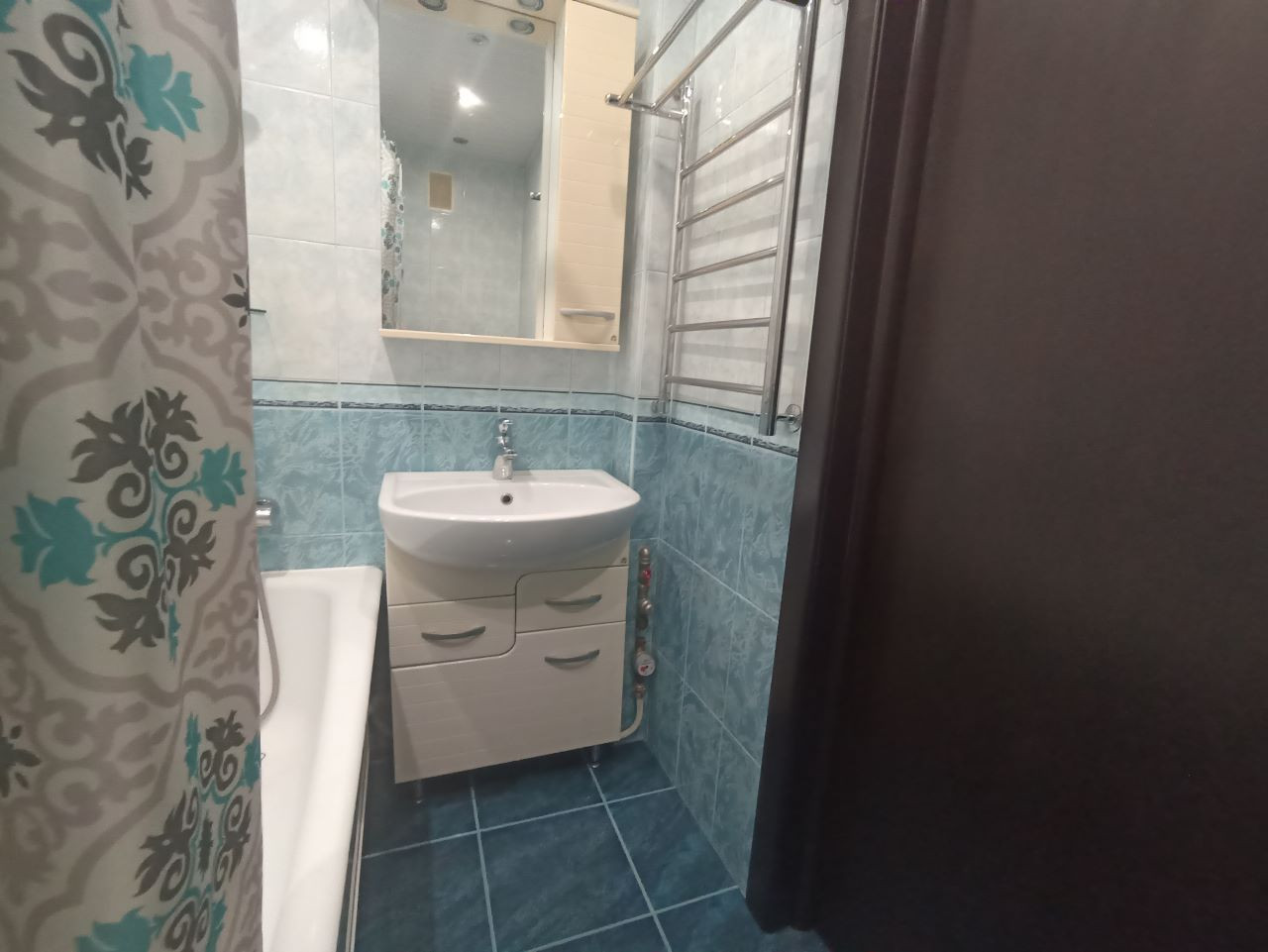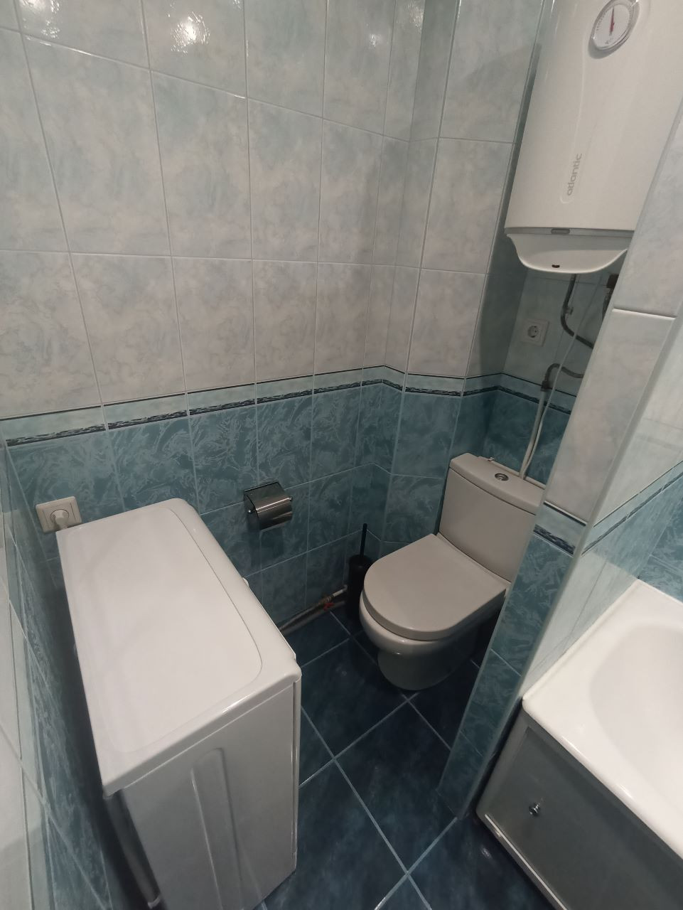 Справа от прихожей ванная комната 4 кв. м. также полностью укомплектована и готова к эксплуатации. Горячая холодная вода + бойлер на время летних отключений не оставит вас без тепла, стиральная машина Indesit, ванная отделена от зоны санузла перегородкой для удобства, достаточное кол-во розеток под различные нужды.