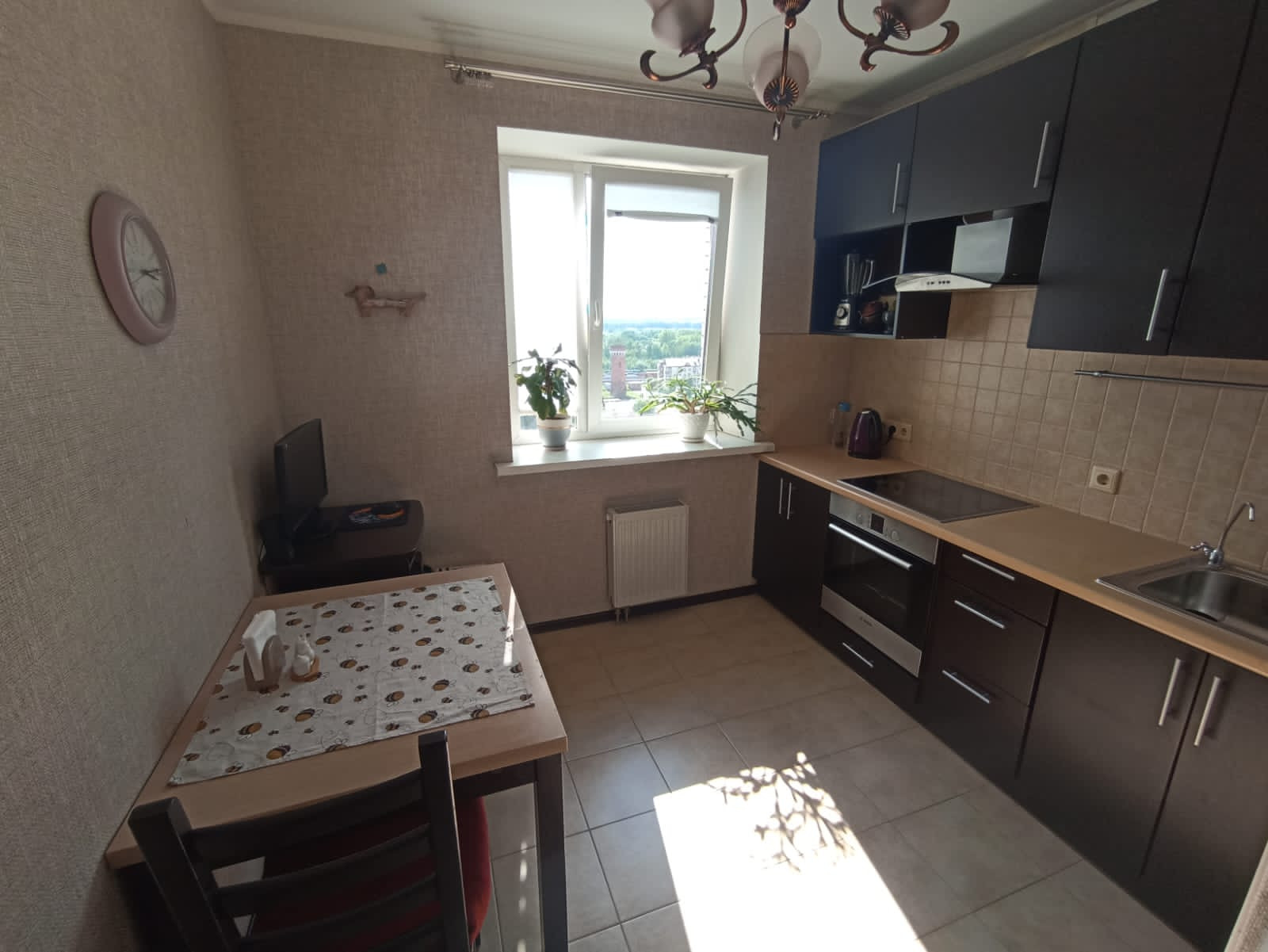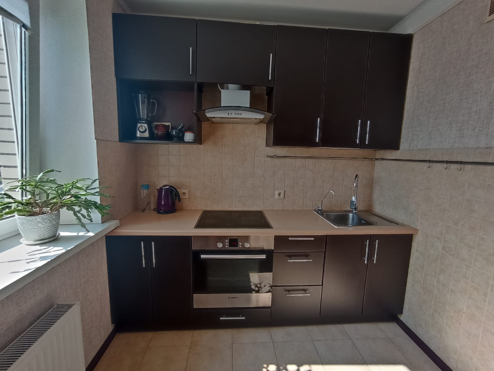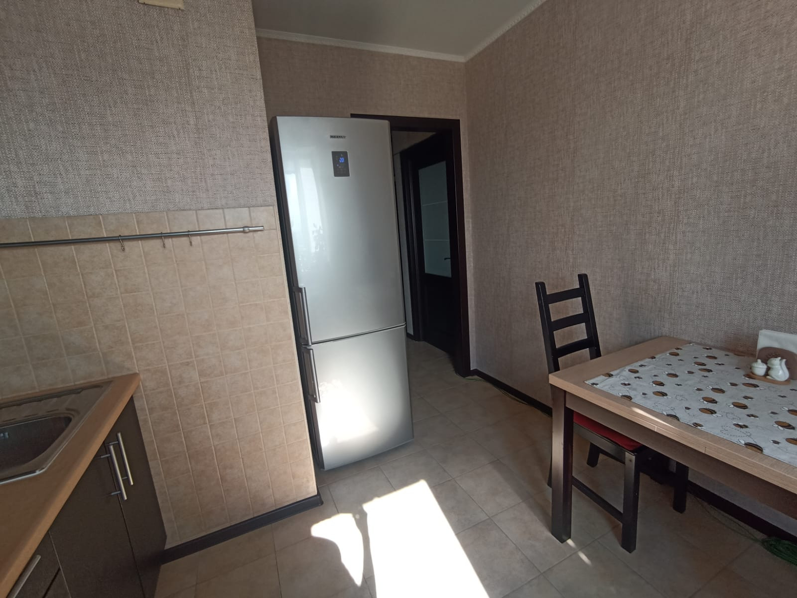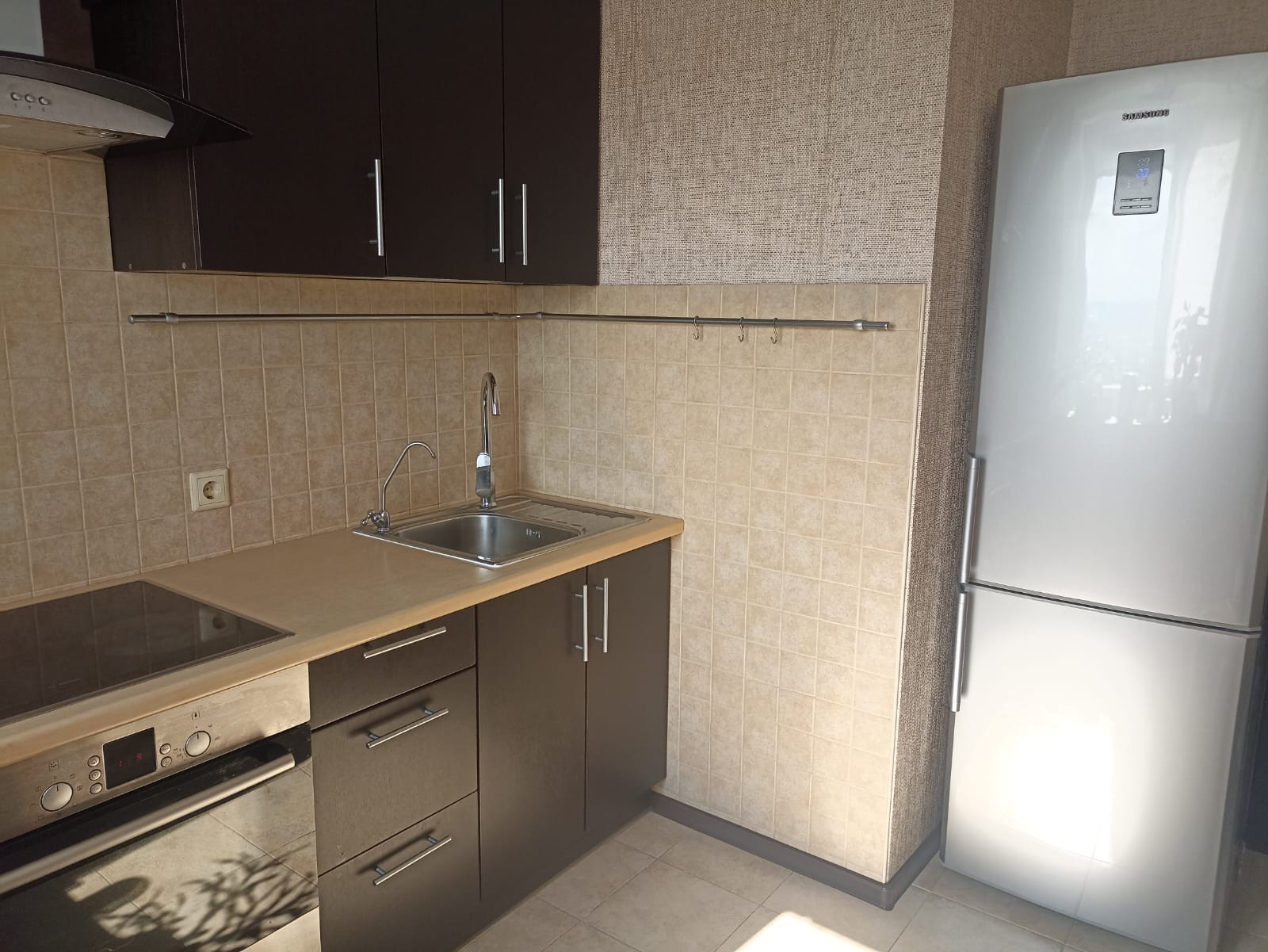 При входе вы попадаете в просторную прихожую 3 кв. м. со встроенным шкафом купе для одежды. Прямо по курсу просторная кухня 8 кв. м. оборудована всем необходимым. Поверхность + духовой шкаф BOSCH. Установлен фильтр обратный осмос для раковины. Вместительный холодильник Samsung. Большое количество шкафов для хранения всего самого необходимого. Большой раскладной обеденный стол. На полу в кухне и прихожей качественная плитка.
