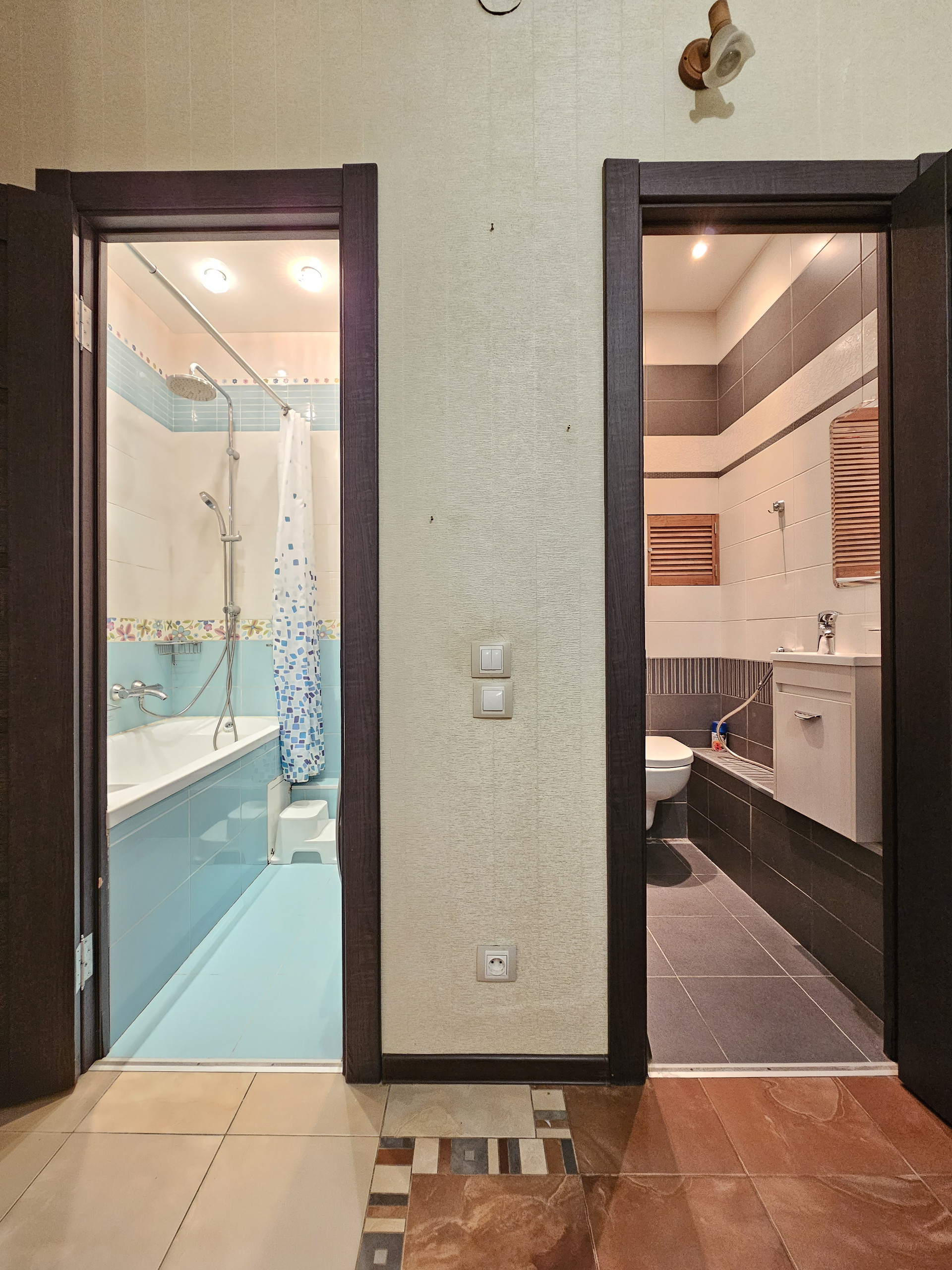 СОСТОЯНИЕ: хорошее. Выполнен качественный ремонт. На полу ламинат, на стенах обои. Санузлы отделаны кафелем.