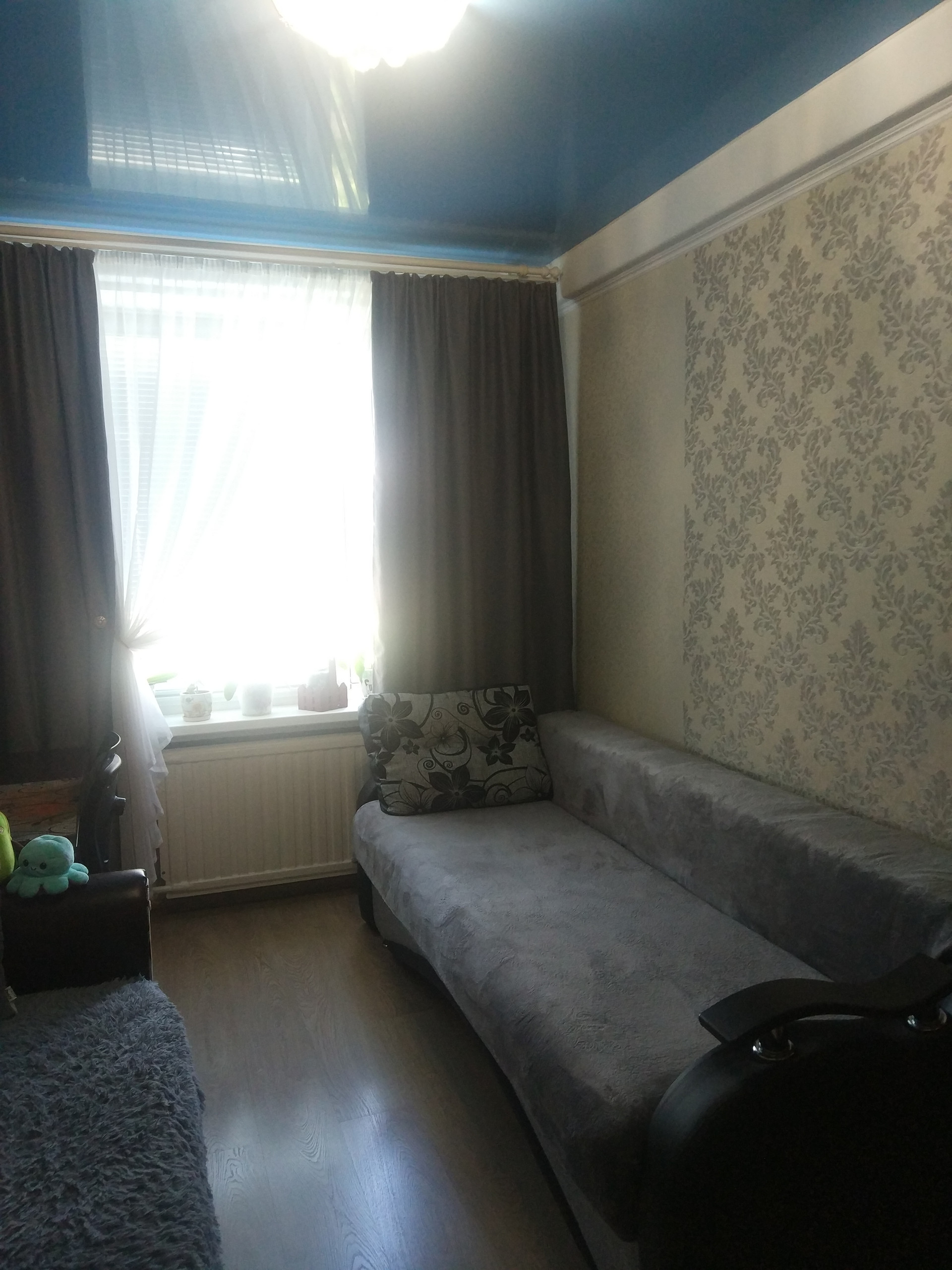 Светлая уютная трехкомнатная квартира в очень хорошем состоянии. Комнаты изолированные (9.9+10.0+ 17.6 кв.м.).Окна выходят на  улицу. Установлены стеклопакеты в комнатах. Санузел раздельный, в кафеле.