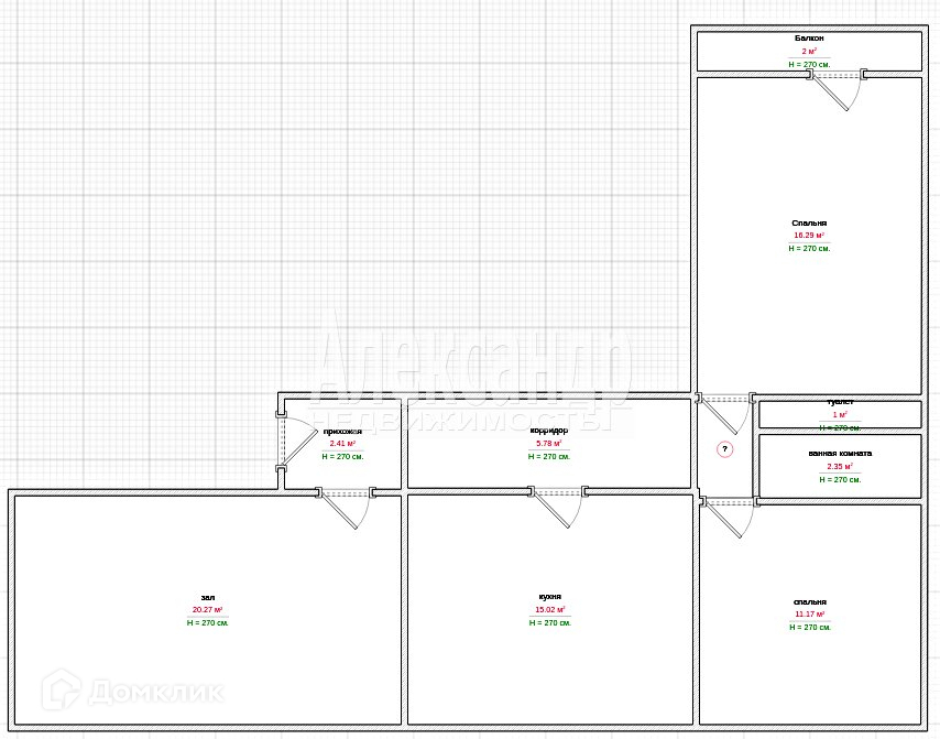 Высота потолков 2.7 м