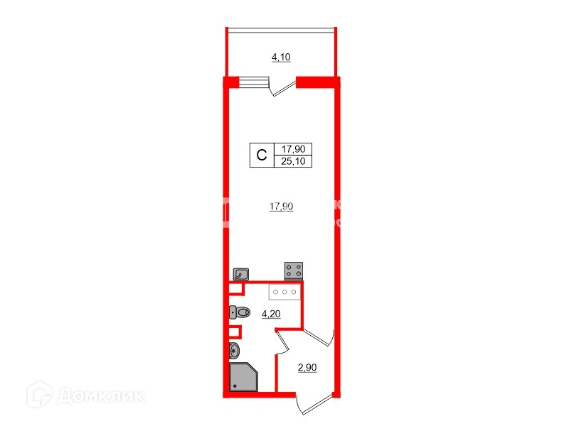 Общая площадь 25 м2