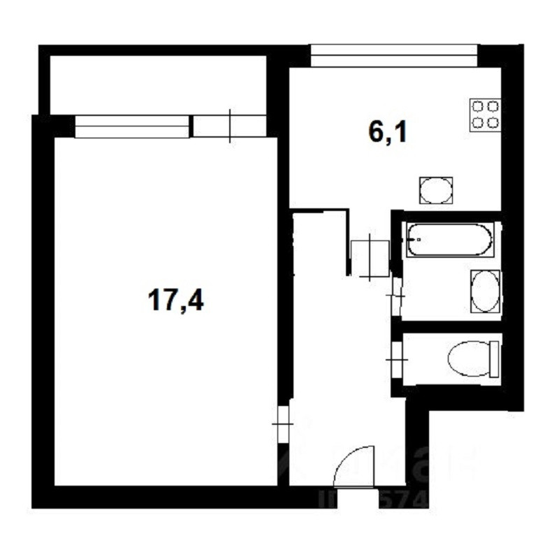 Жилая площадь 17.4 м2