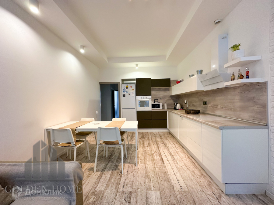 В квартире выполнен современный свежий ремонт с использованием дорогостоящих отделочных материалов. Авторский дизайн-проект. Квартира оборудована всей необходимой для комфортного проживания мебелью и бытовой техникой. Все остается будущему покупателю.