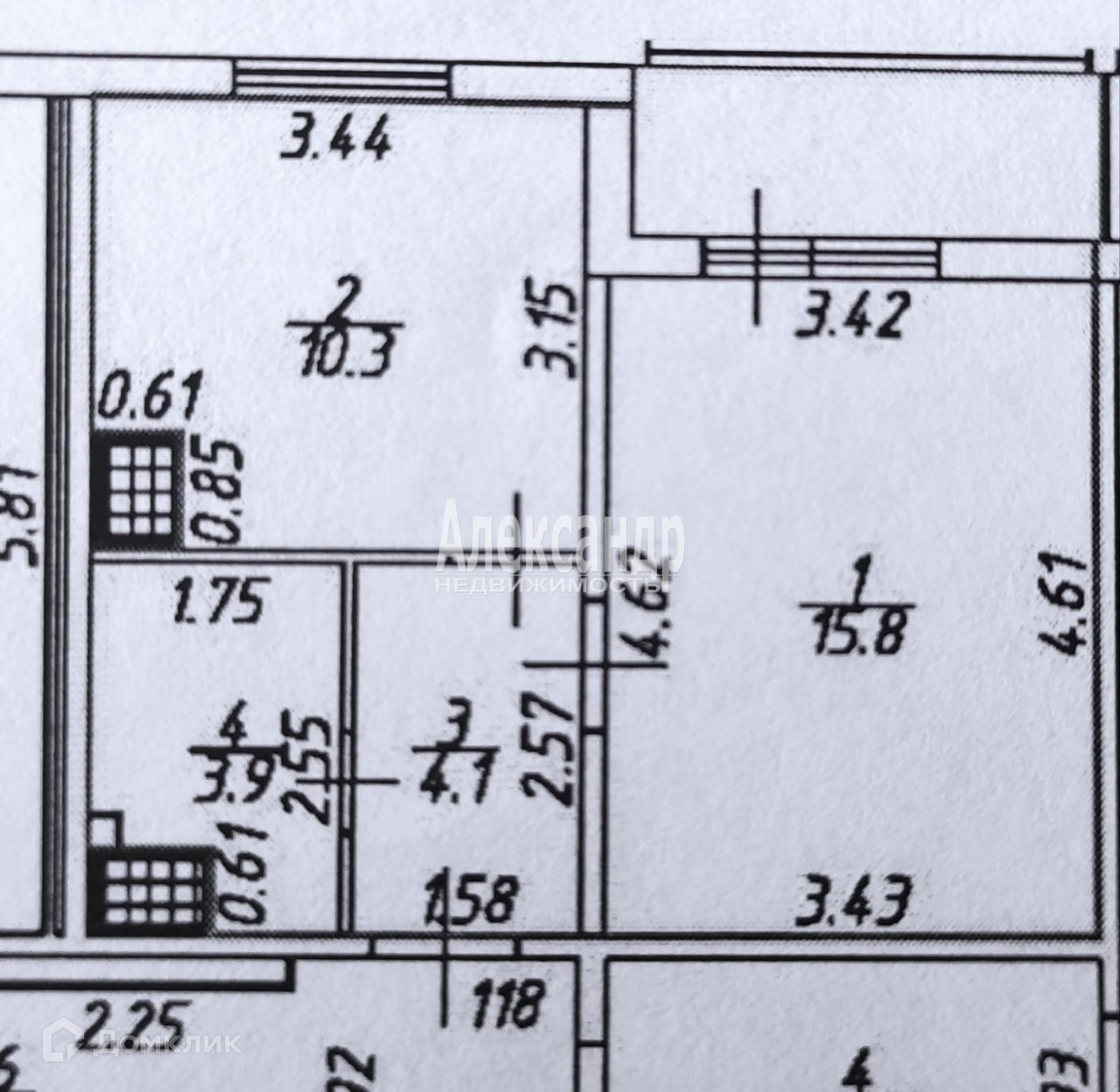 Жилая площадь 15.8 м2