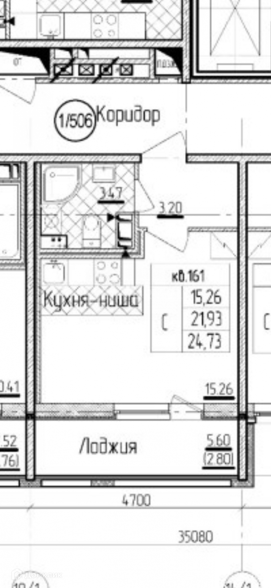 Общая площадь 24.73 м2