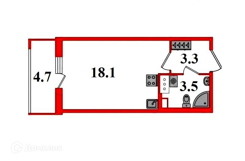 Жилая площадь 18.1 м2