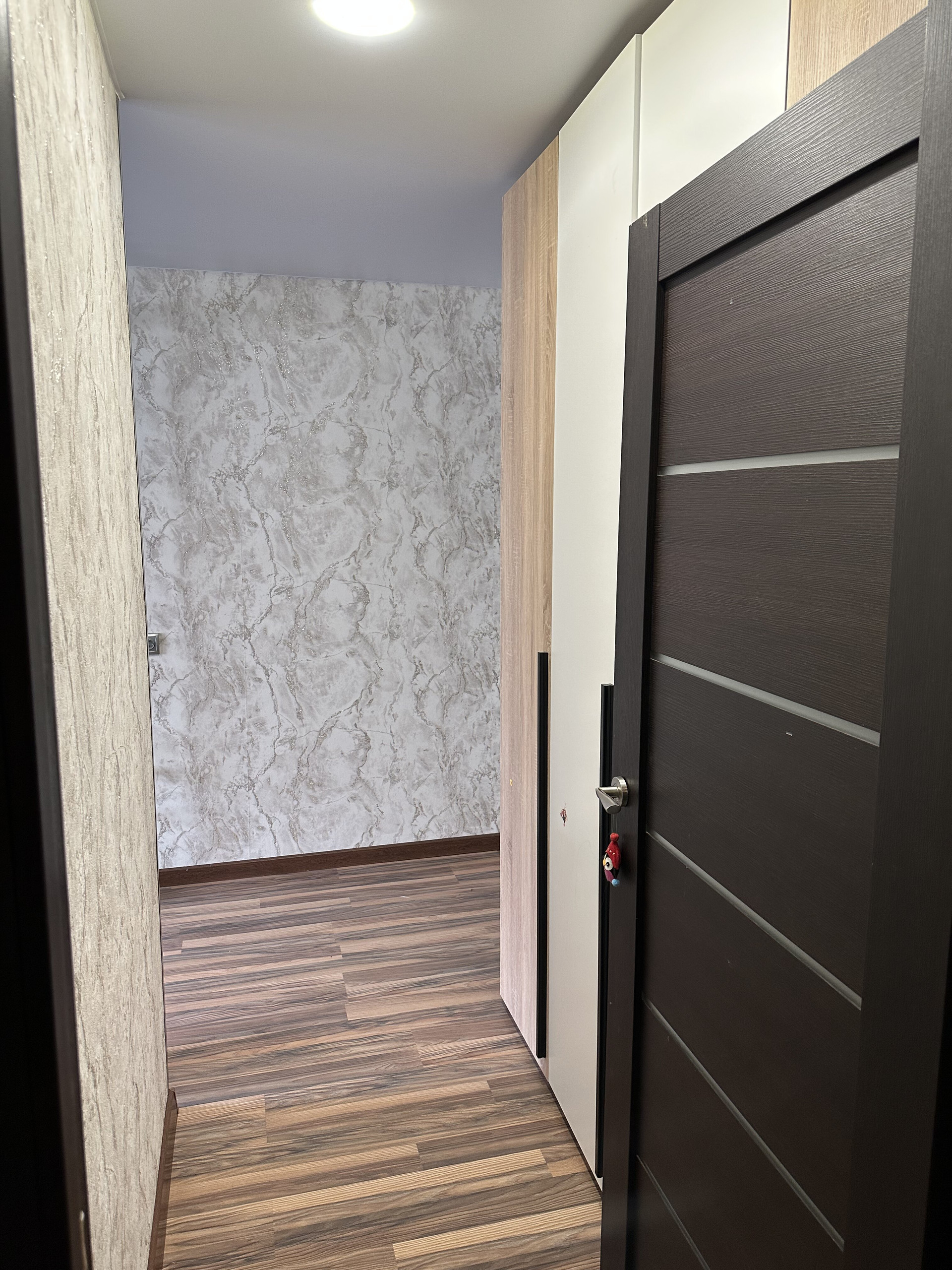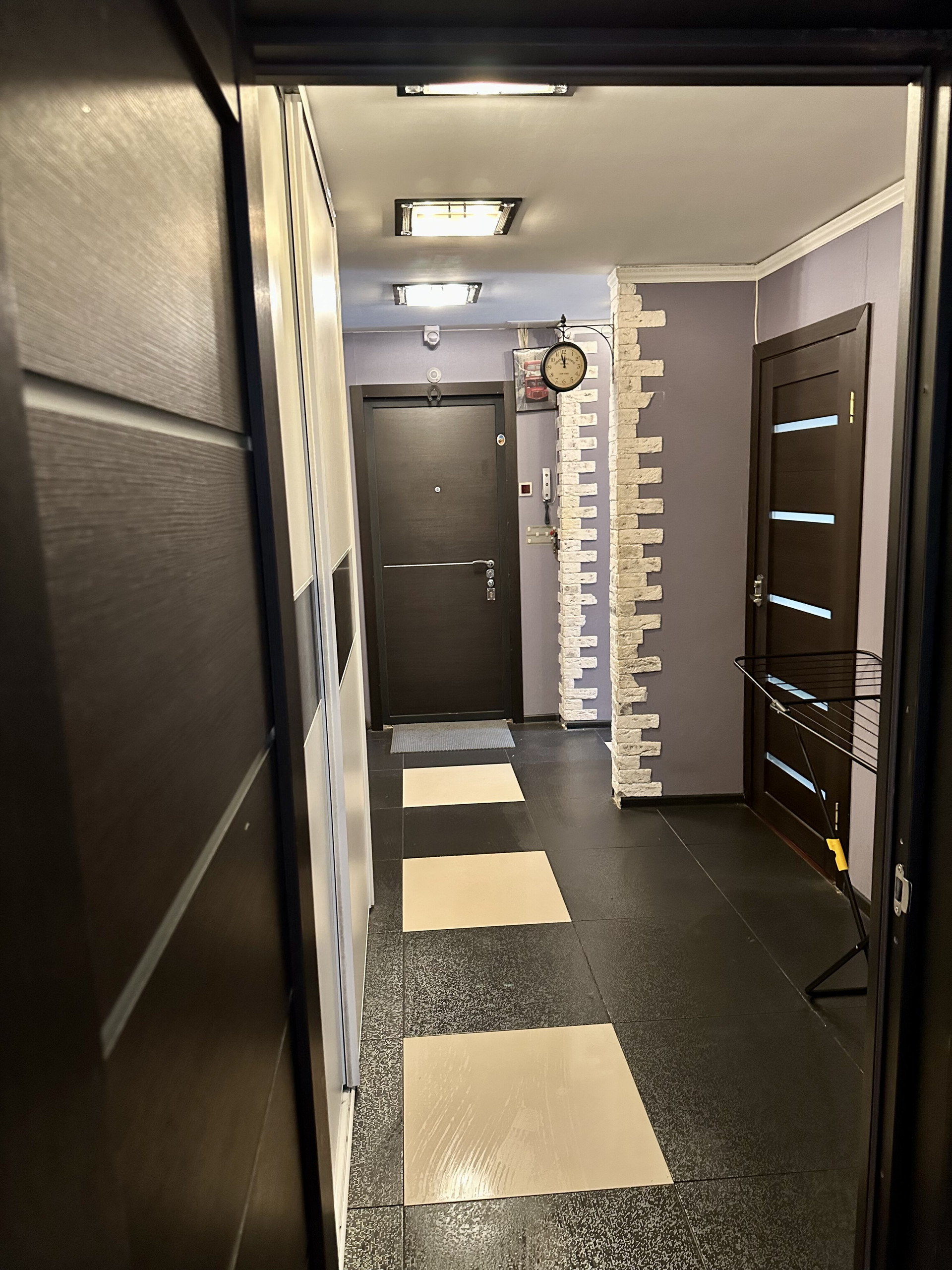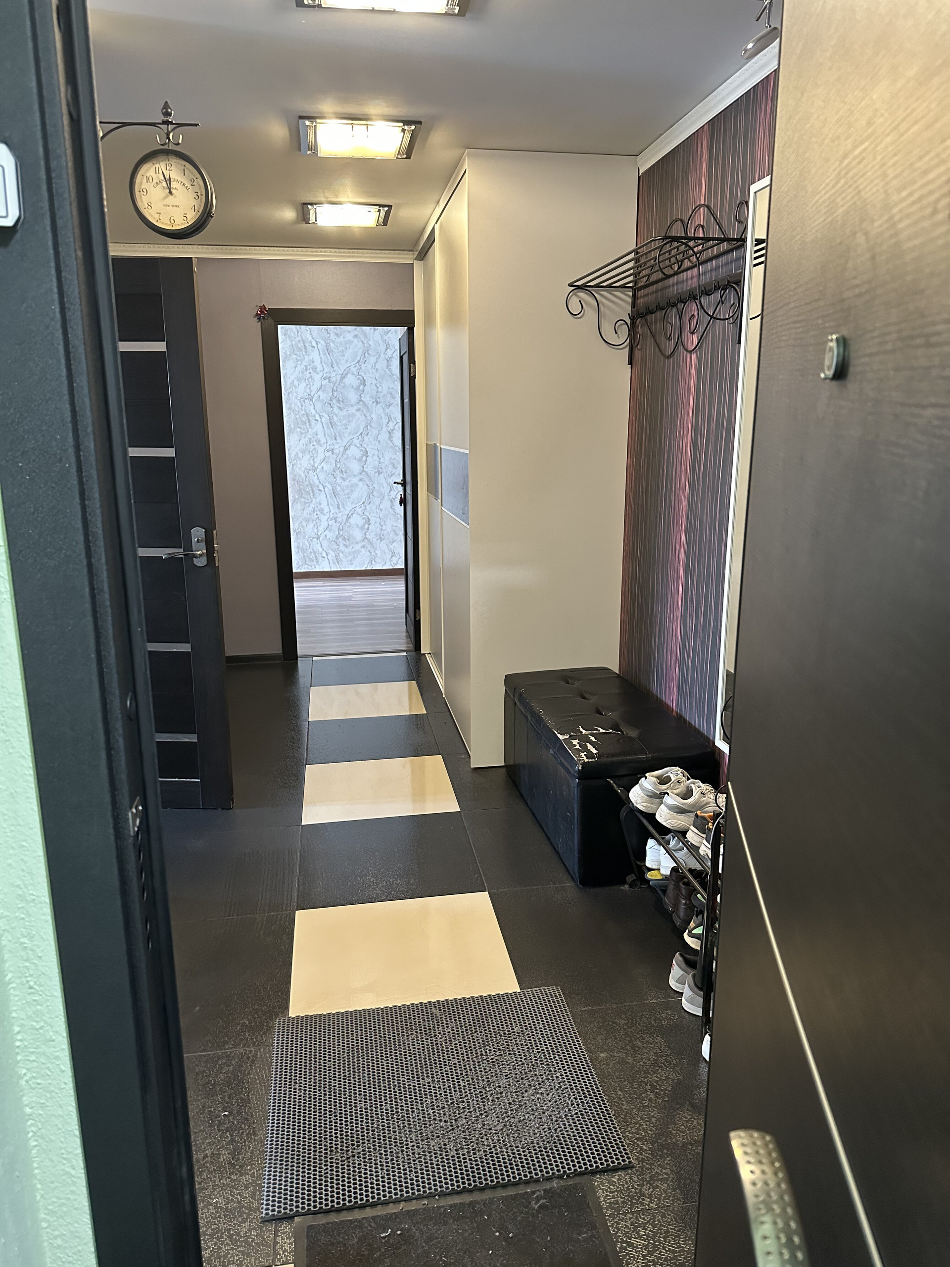 Остается кухонный гарнитур со встроенной техникой и большой шкаф в коридоре.