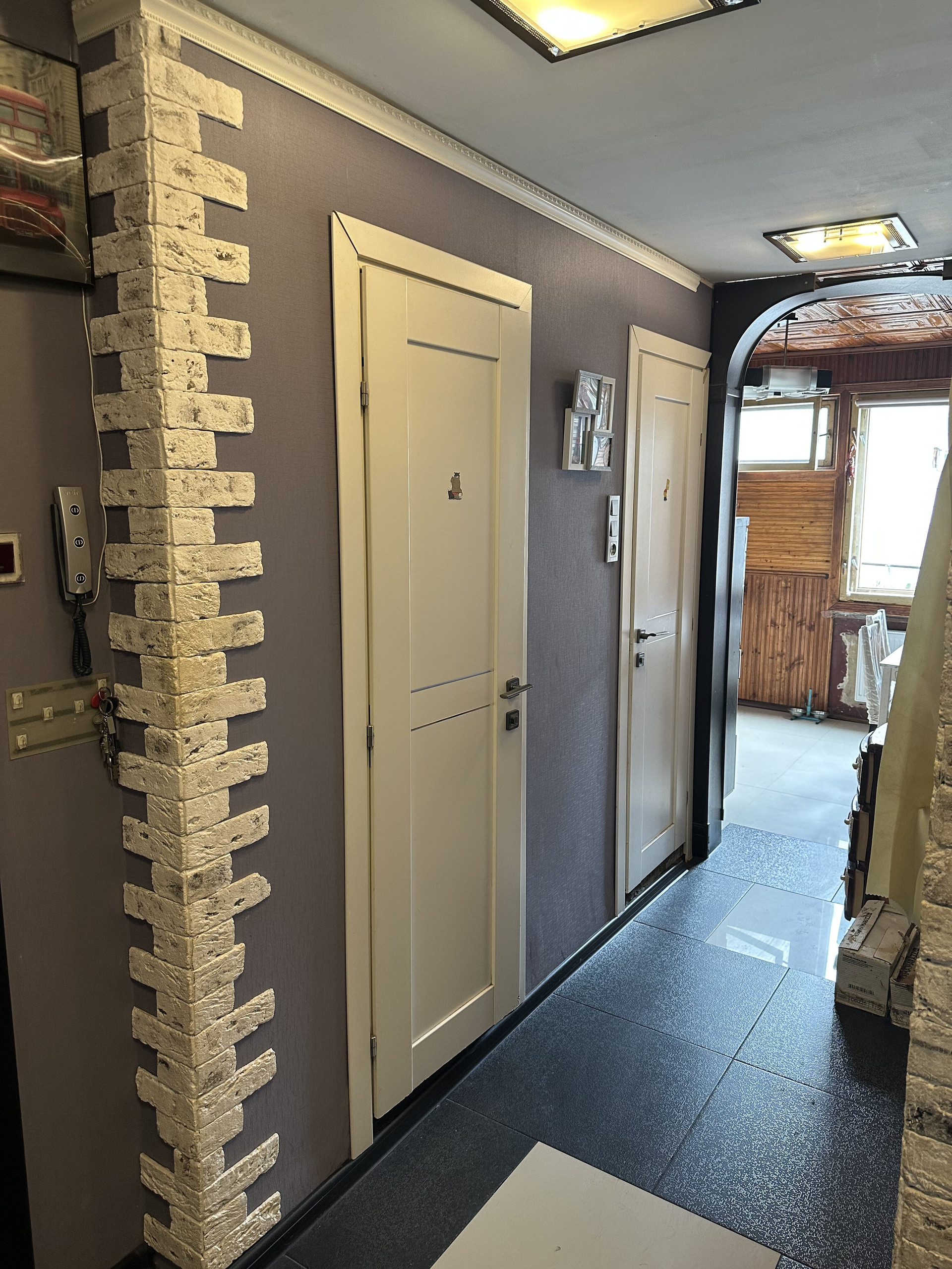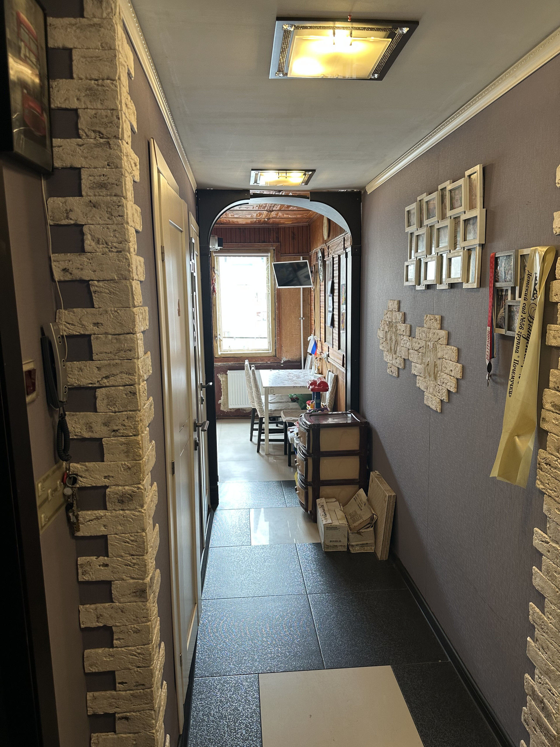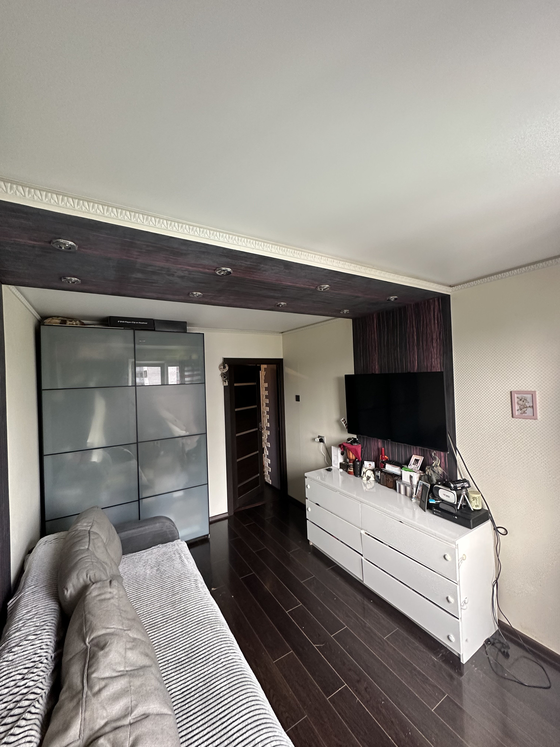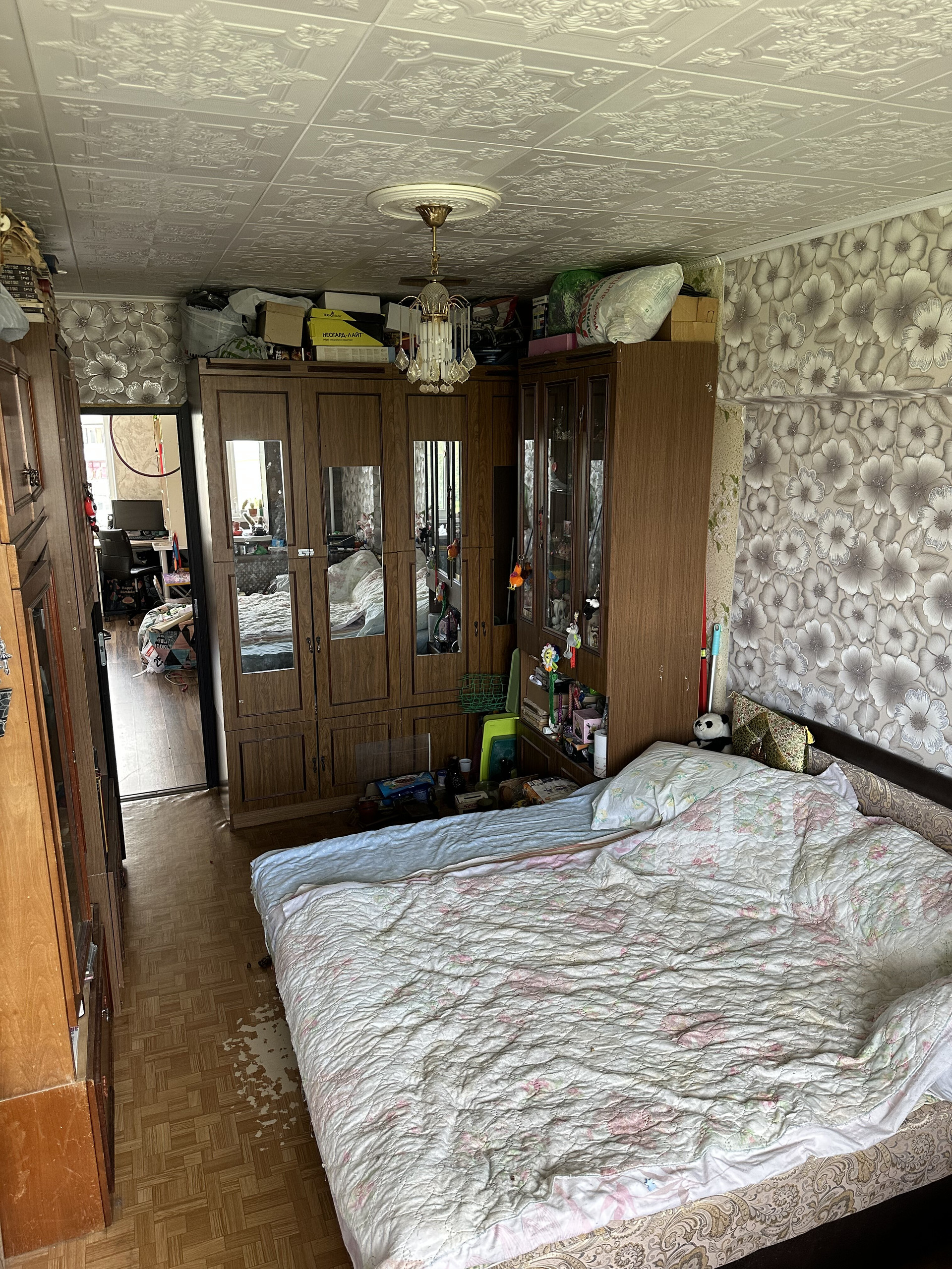 Остается кухонный гарнитур со встроенной техникой и большой шкаф в коридоре.