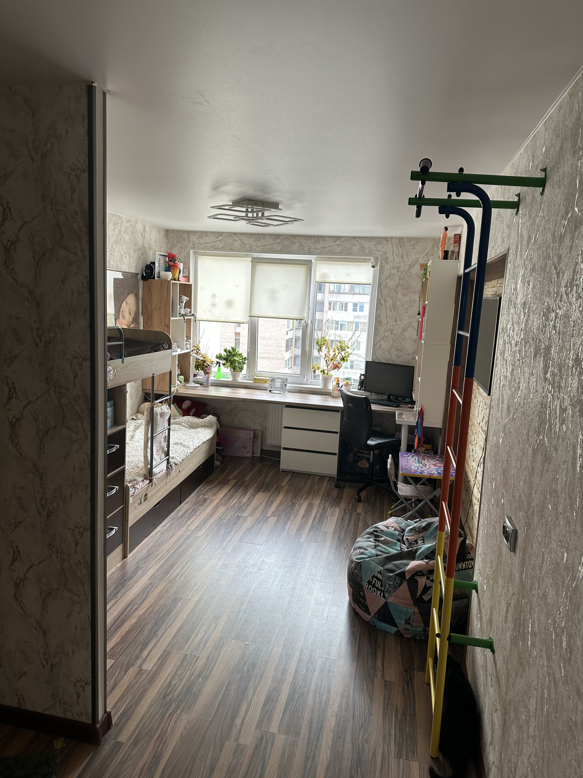 В детской комнате сделано зонирование - перегородка из ГКЛ.