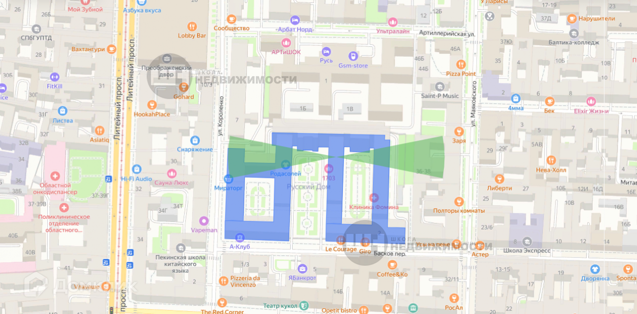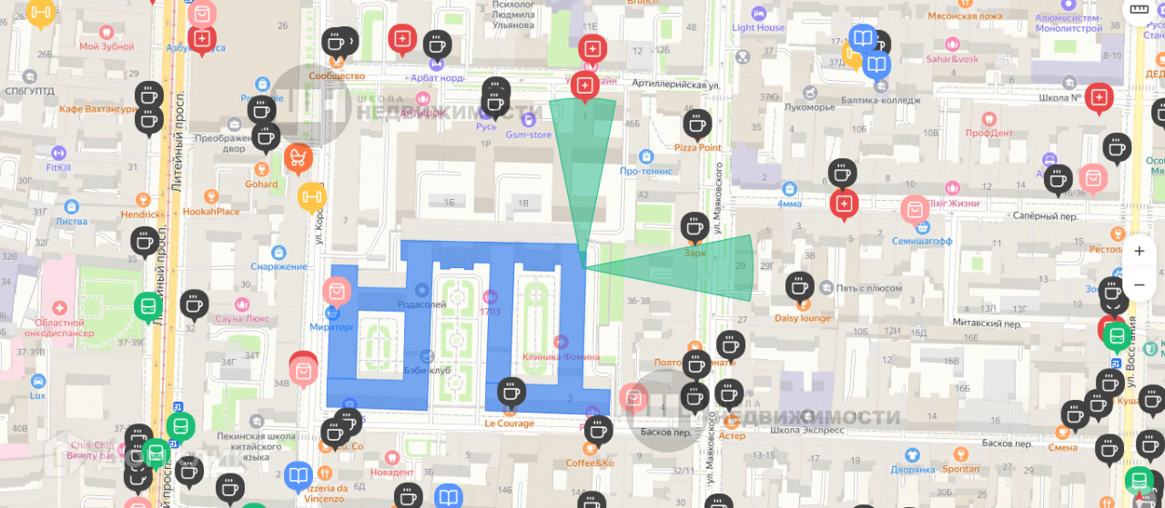 В пешей доступности школы, детские сады, магазины, офисные центры, отделения почты и банков, медицинские учреждения. Ст. метро Чернышевская находится в 10 минутах пешком, Невский проспект – в пяти минутах транспортом.