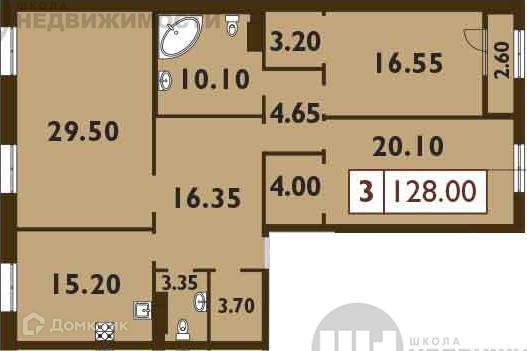 Объект №172447 Продаётся 4-комнатная квартира - 128 м2, кухня - 15,2 м2, двусторонняя, комнаты правильной формы, самая востребованная планировка.