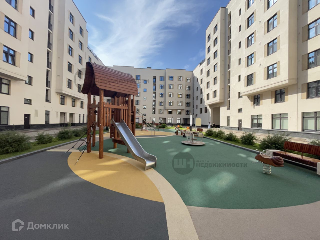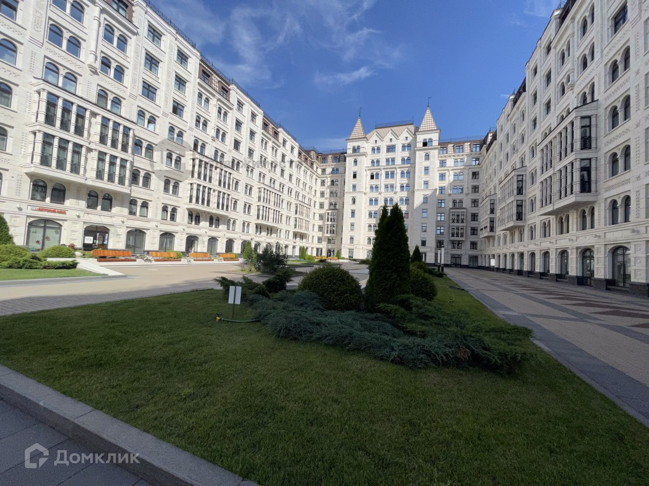 Придомовая территория благоустроена пешеходными аллеями с декоративными кустарниками, детскими площадками и зонами отдыха, подземный паркинг, закрытые дворы оснащены системами безопасности.