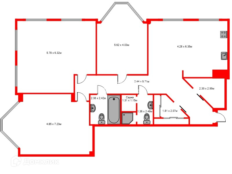 Площадь кухни 12.1 м2
