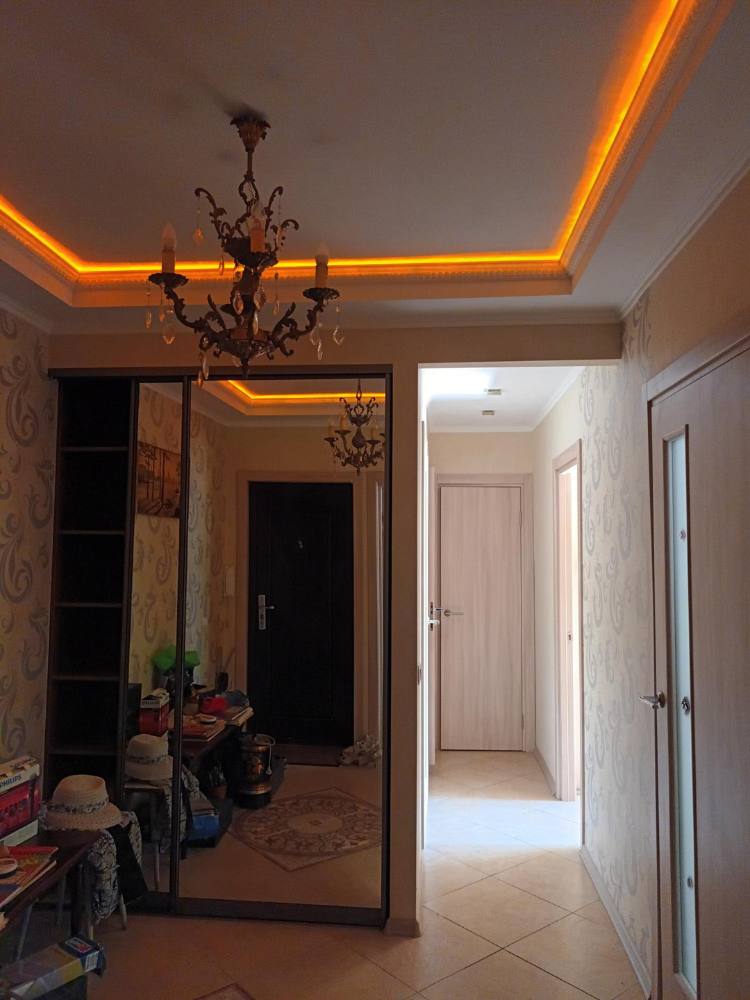 Стены выровнены, новые обои во всей квартире.