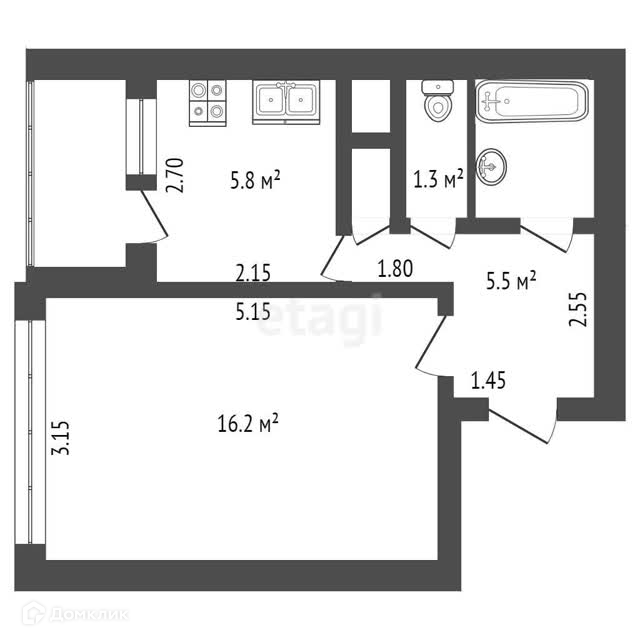 Жилая площадь 16.2 м2