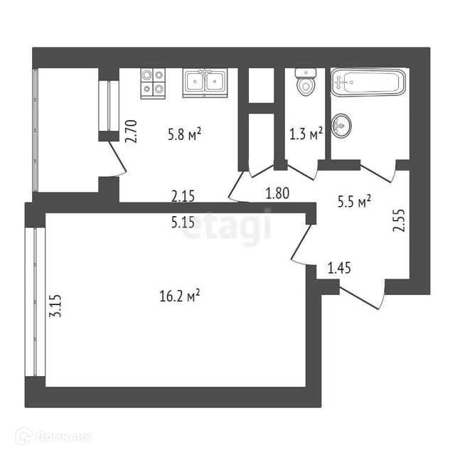 Площадь кухни 5.8 м2