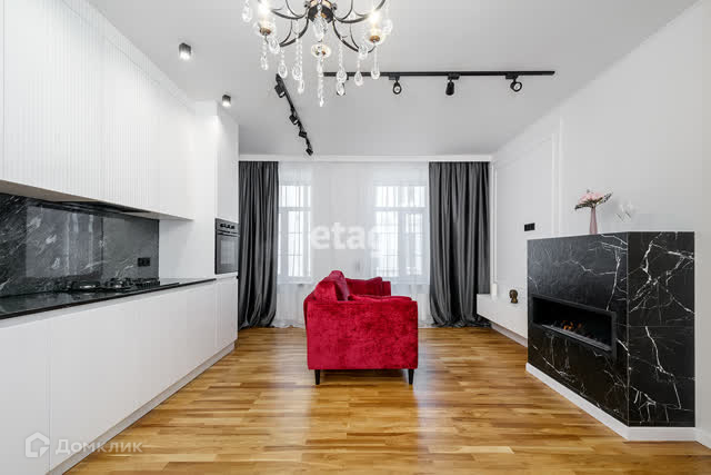 В квартире выполнен дизайнерский ремонт, все материалы очень качественные от ведущих брендов. Настоящий камин с натуральным огнём. Полы и подоконники из нат. дуба, выведена система мастер- выключатель