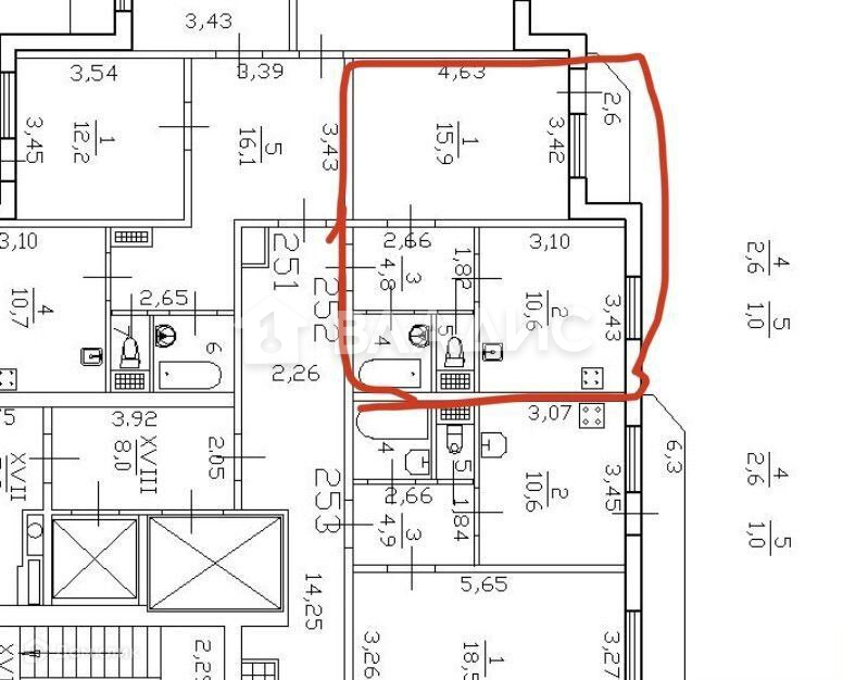 Жилая площадь 15.9 м2