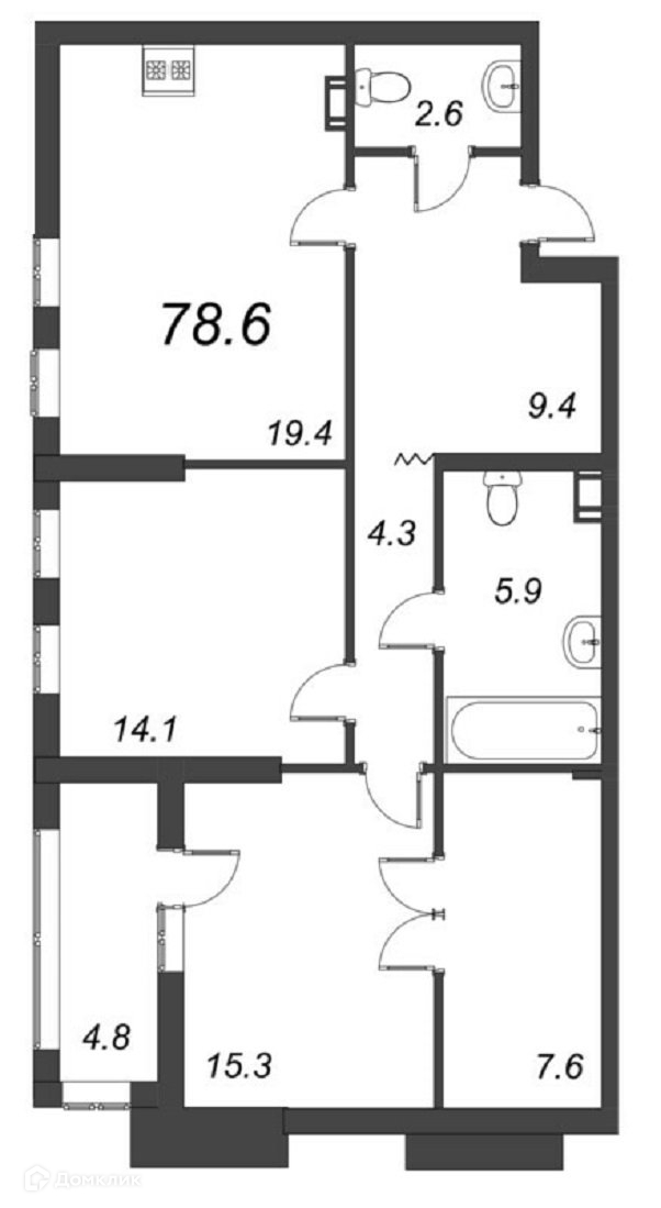 Общая площадь 79 м2