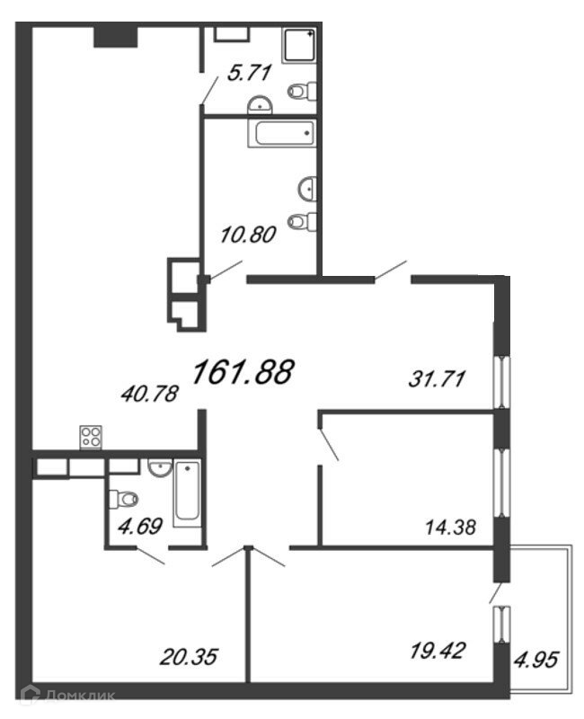 Квартира без отделки, что позволяют начать новую жизнь «с нуля» и сразу оформлять помещения «под себя» , с просторной кухней площадью 41 м2, с 3-мя санузлами, расположена на 9-м этаже 9-ти этажного дома
