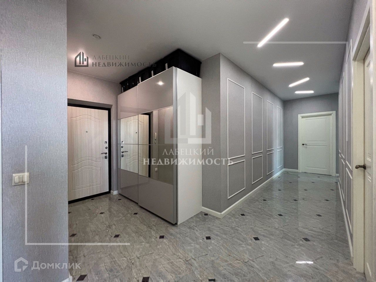 - При входе в квартиру Вы попадаете в просторный холл (15.28 м²) с теплым полом, где расположен вместительный шкаф для верхней одежды.