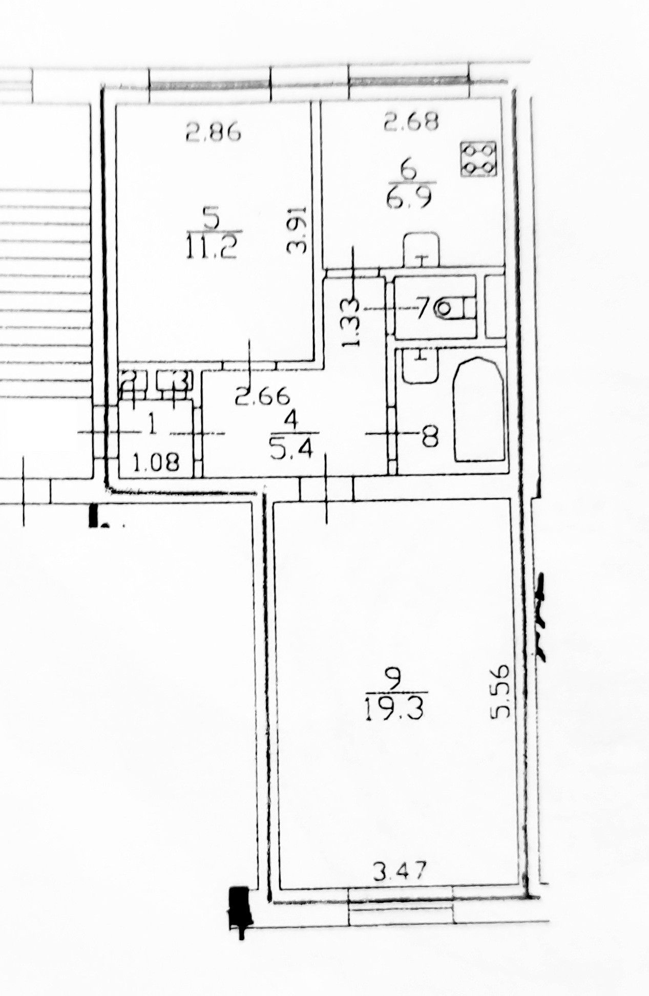 Жил.пл. 30,5 м.кв (комнаты 19,3+11,2 м.кв.)