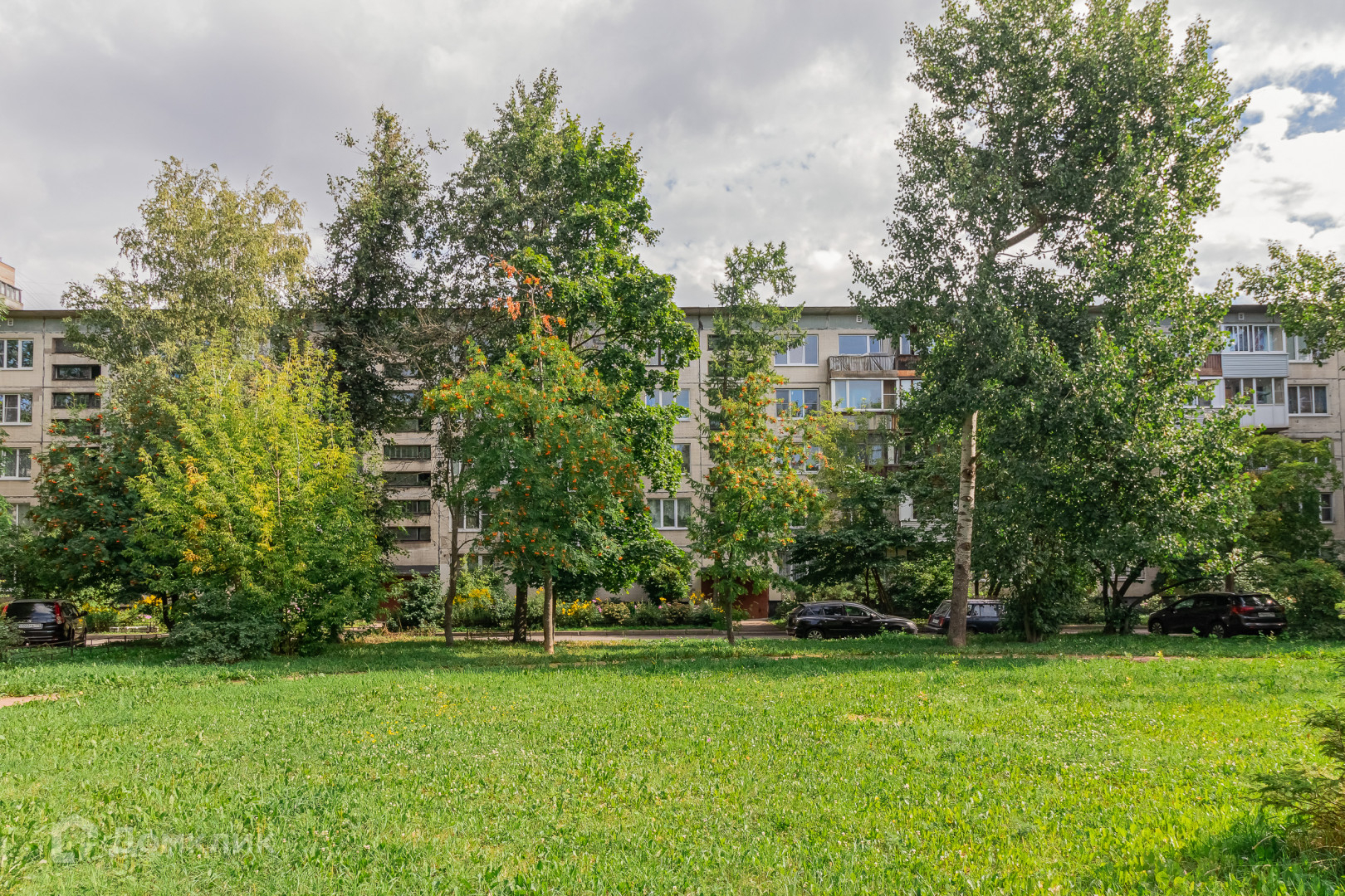 Обжитой , зелёный район. В пешей доступности метро Дыбенко - 12 мин .