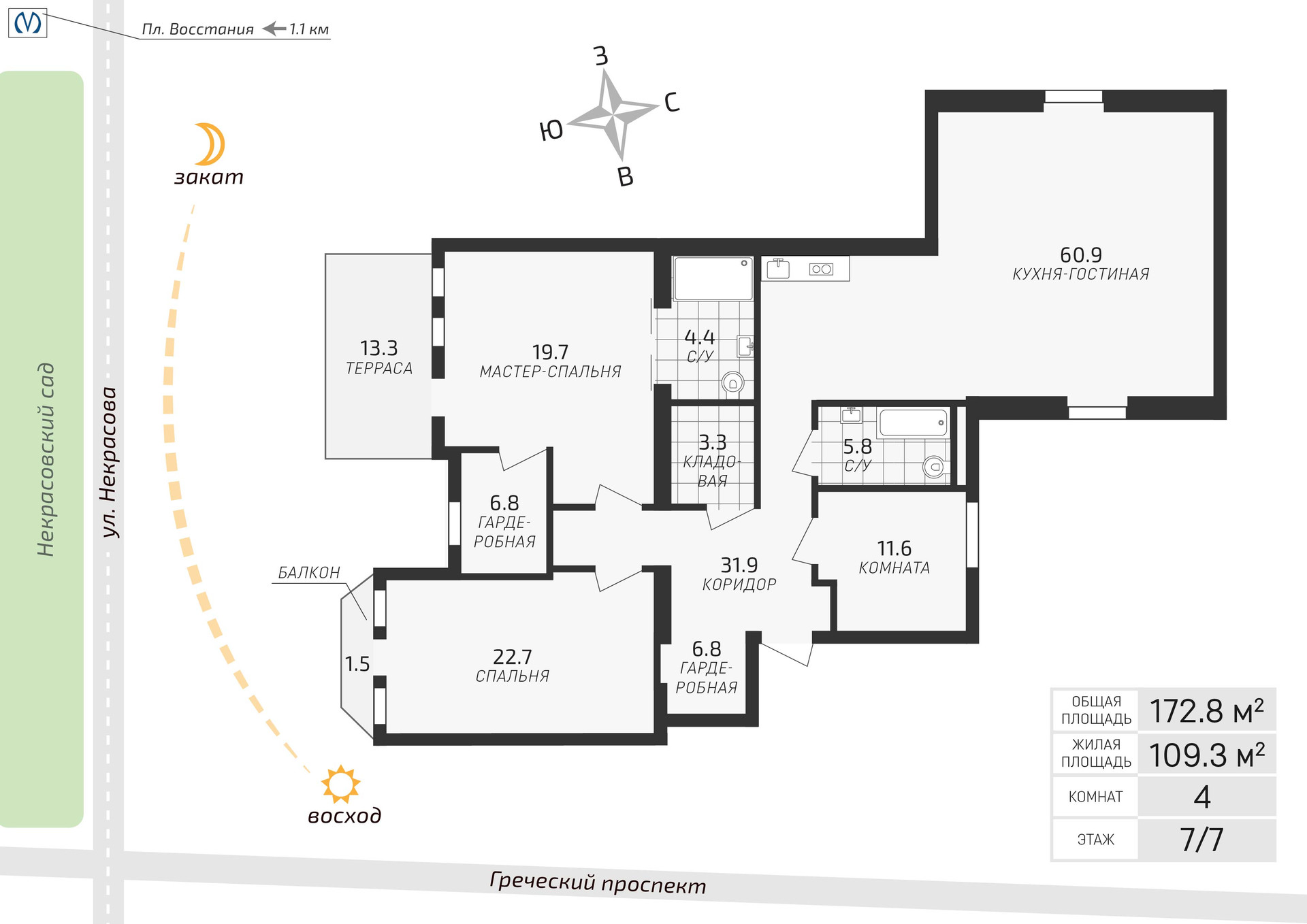Общая площадь 172.8 м2