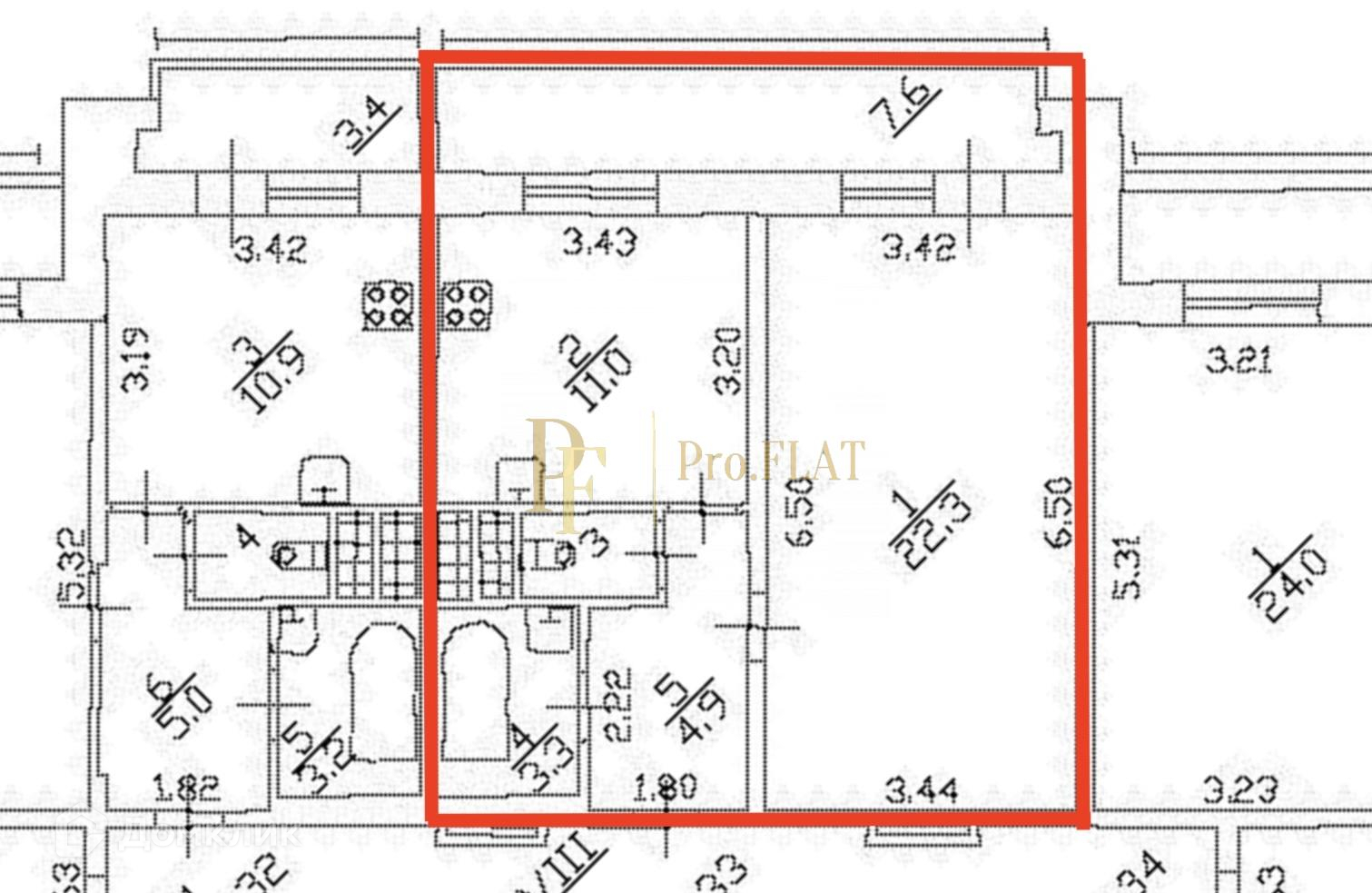 Общая площадь 50.5 м2