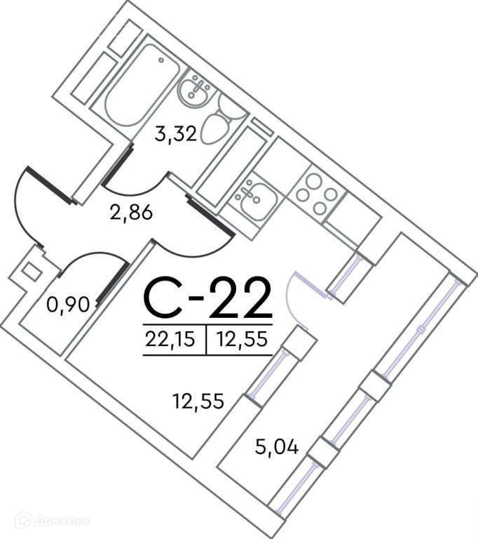 Общая площадь 22.15 м2