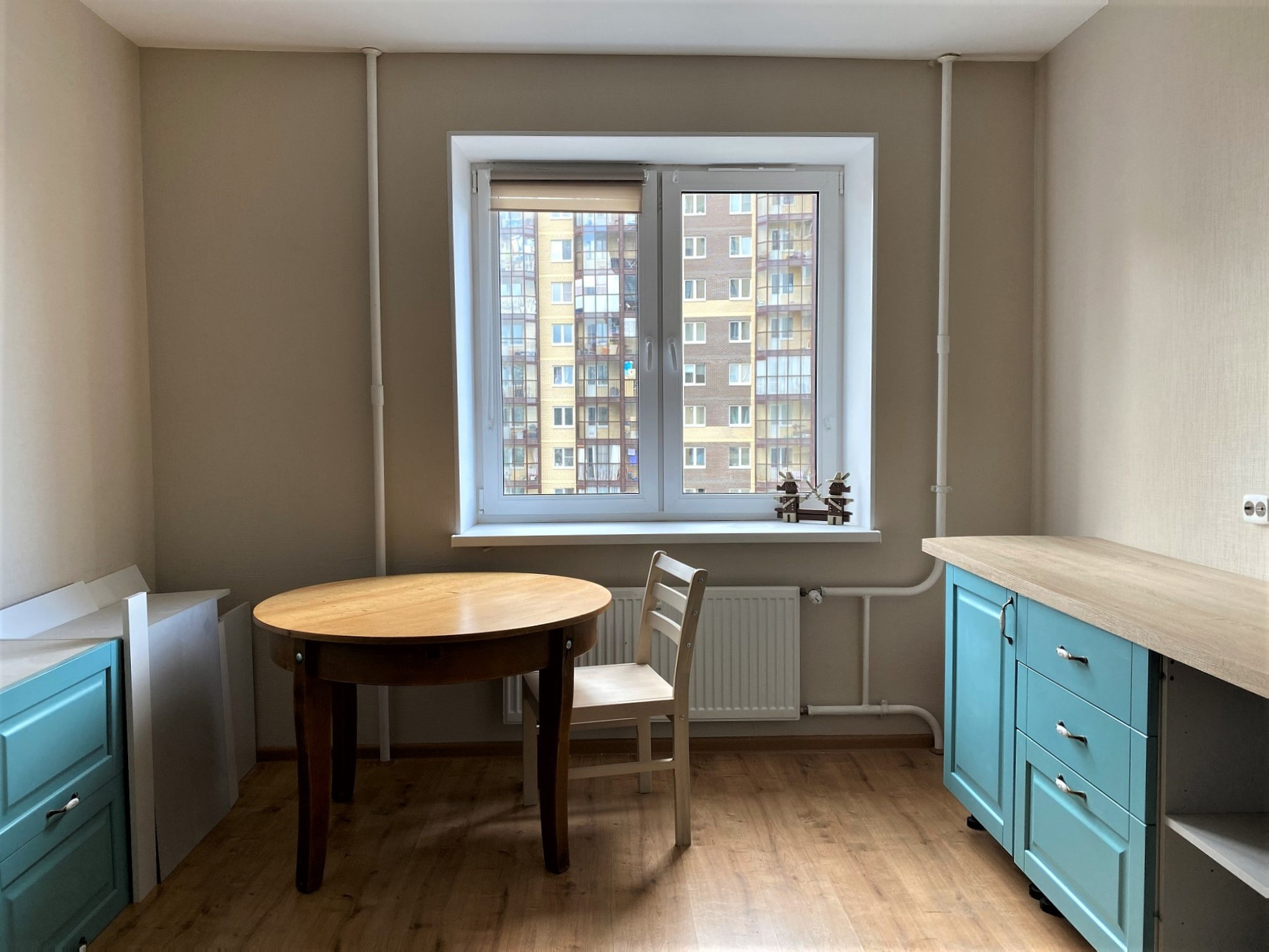 Квартира общей площадью 62.3 кв.м расположена на 15 этаже. В окнах – роскошные закаты, река и зелень. Отличная планировка: две изолированные комнаты 16.6 и 12.4 кв.м, просторная кухня 14.3 кв.м, кладовое помещение 3 кв.м. Из маленькой спальни предусмотрен выход на лоджию. Санузел раздельный. Во всех помещениях квартиры выполнен косметический ремонт, ванная и туалет доремонтированы после застройщика.