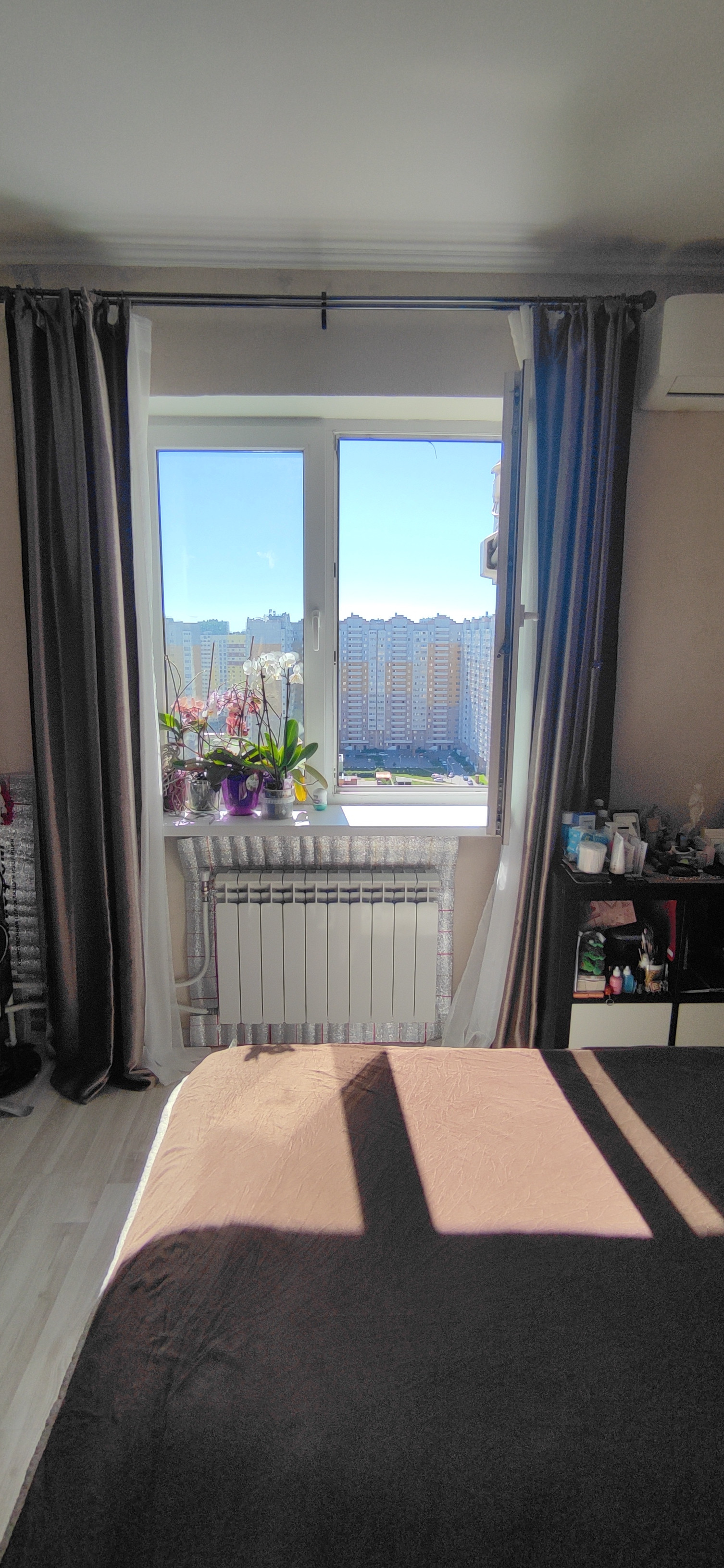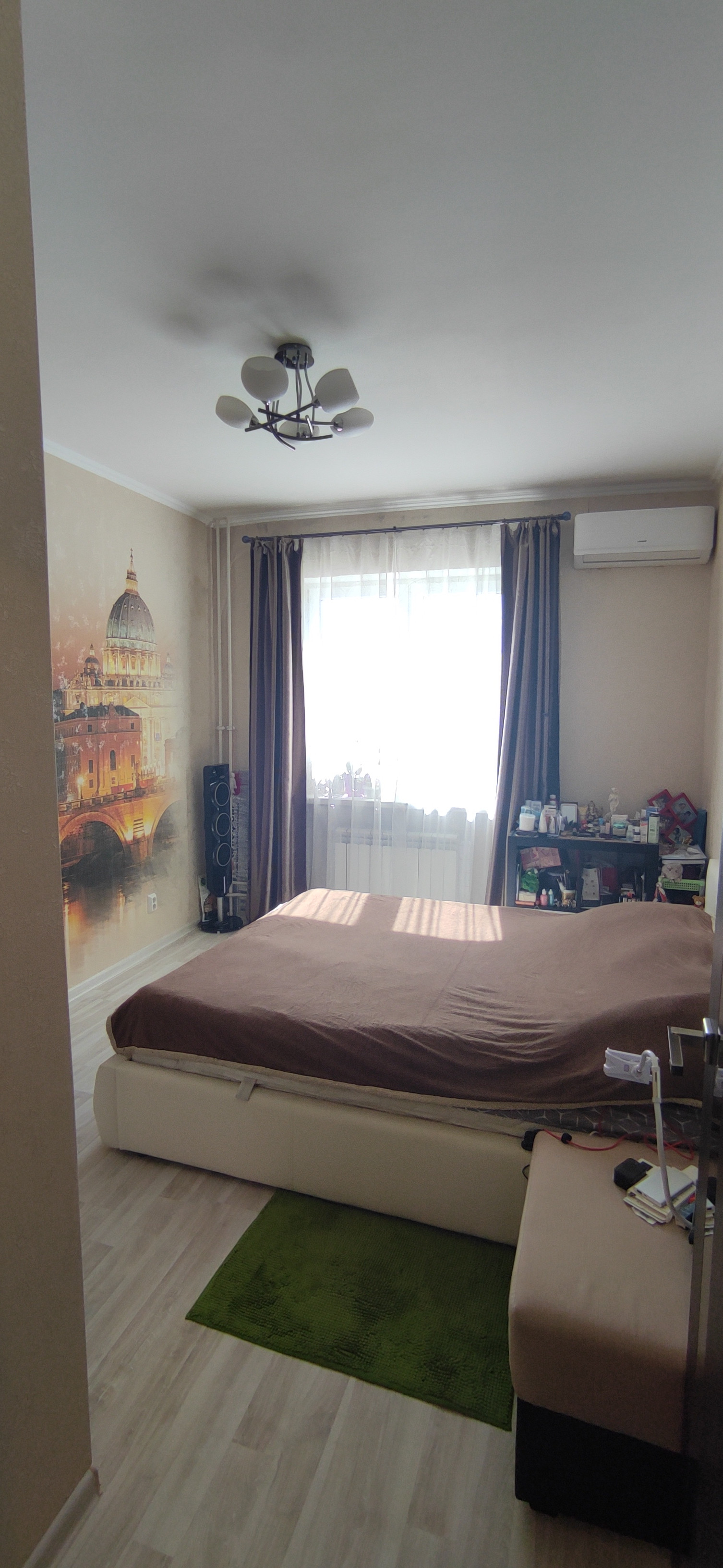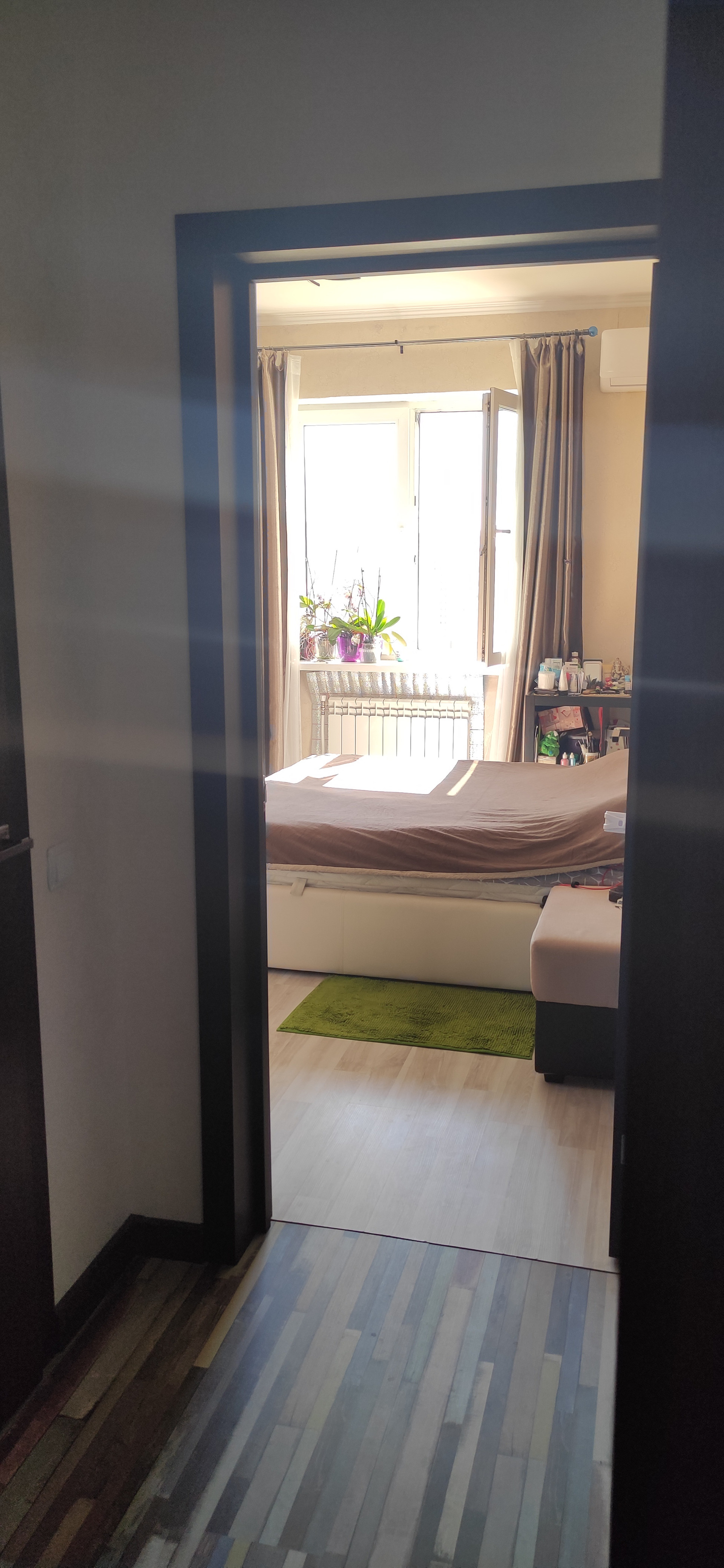 В квартире современный ремонт из качественных материалов. Большая ванна длиной 1,8 м. Теплые полы в санузле и на кухне. Кондиционер.