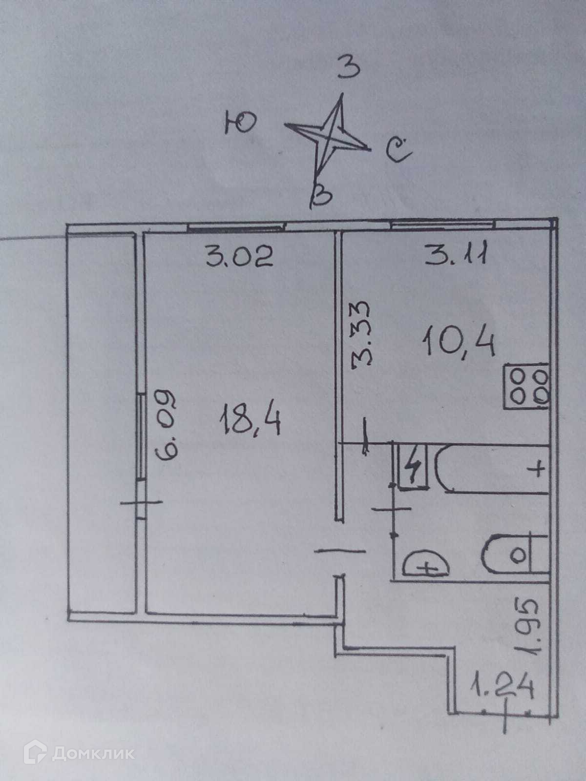 Жилая площадь 18.4 м2