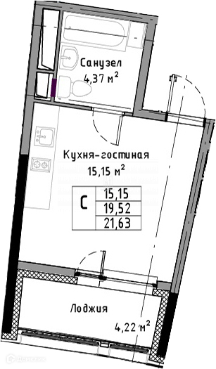 Общая площадь 21.63 м2