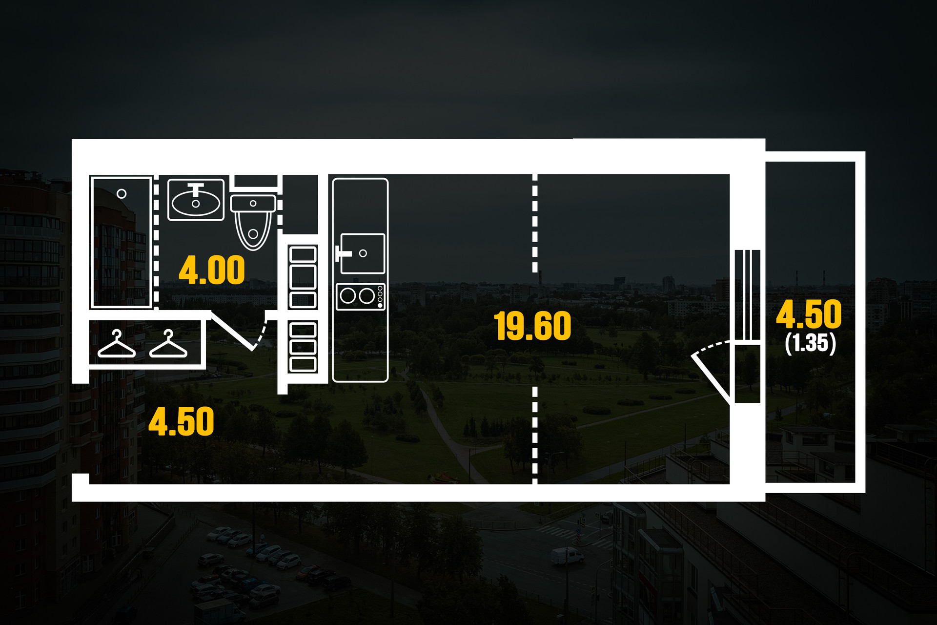 Общая площадь 28.1 м2