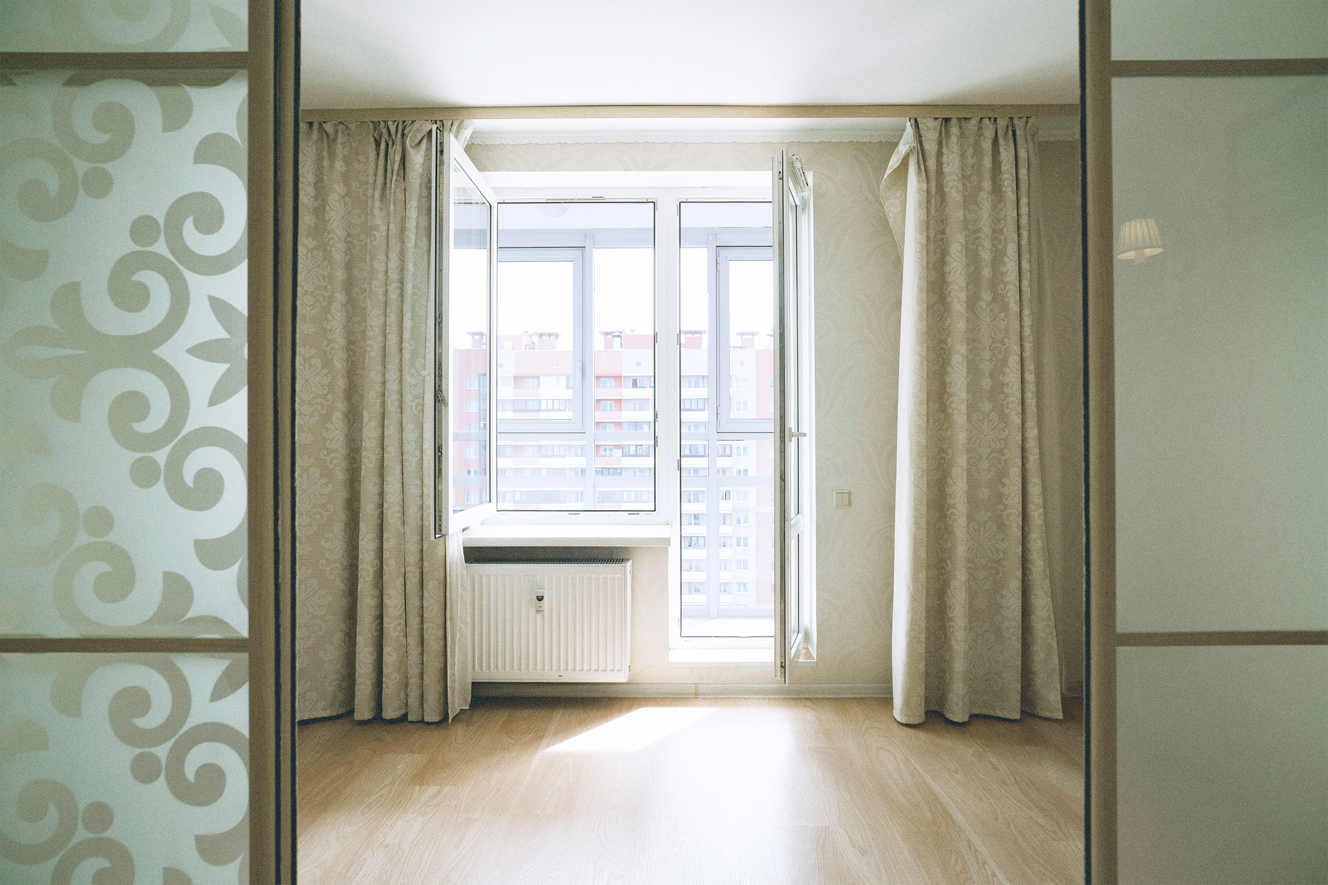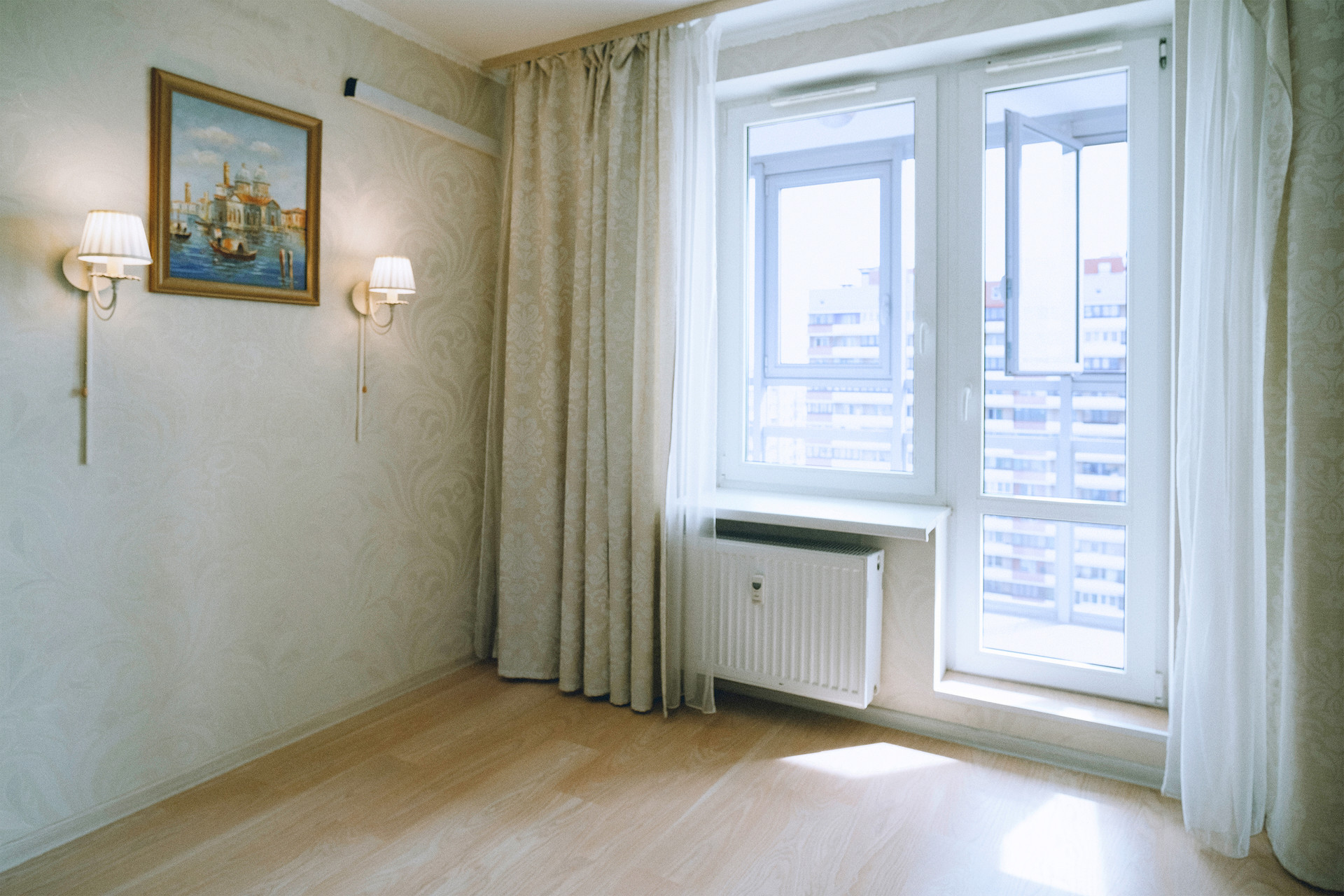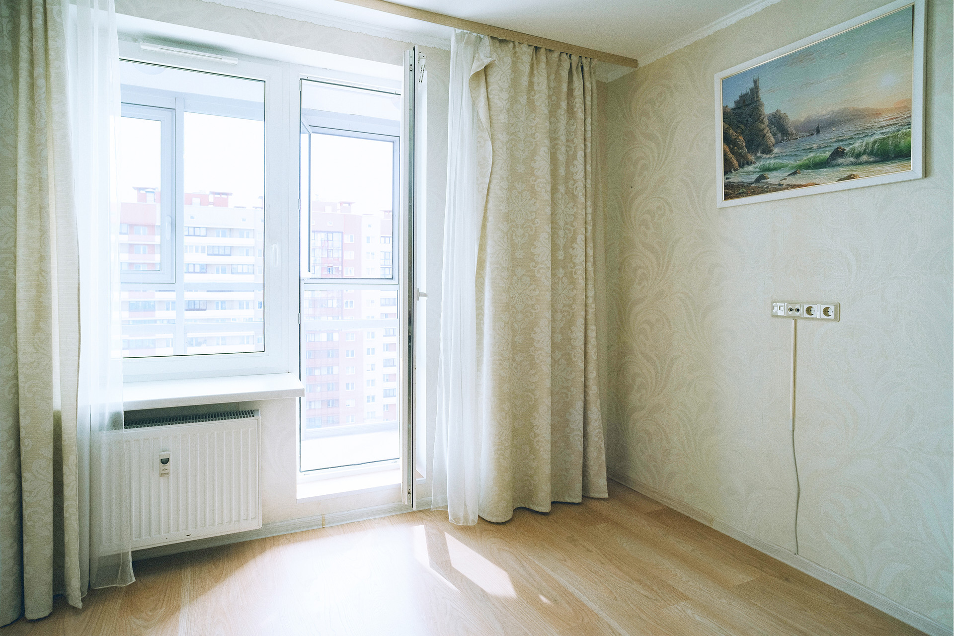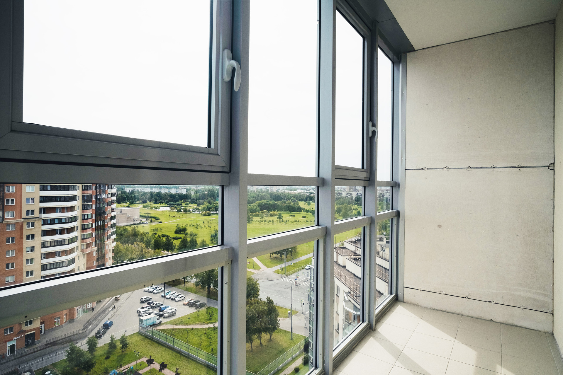 Квартира расположена на 15 этаже и имеет прямой вид на Полюстровский парк.